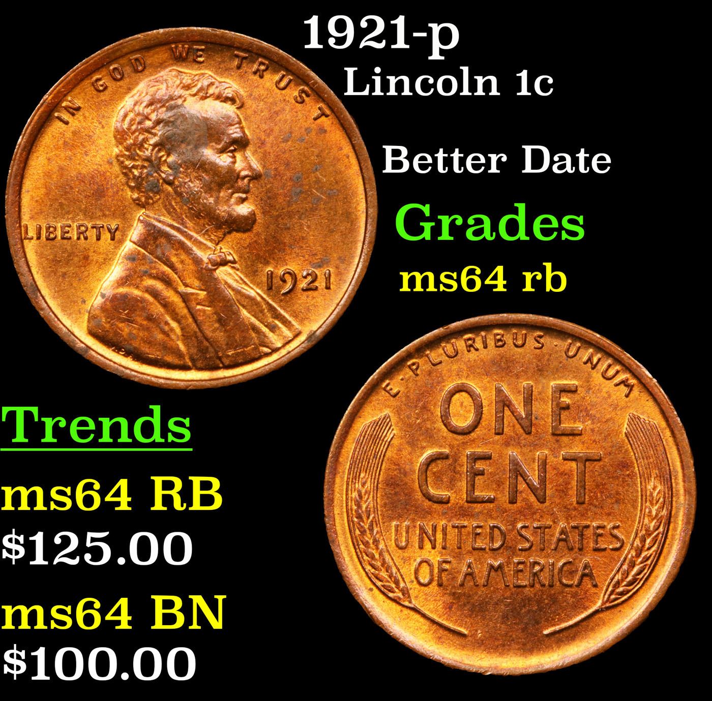 1921-p Lincoln Cent 1c Grades Choice Unc RB.
