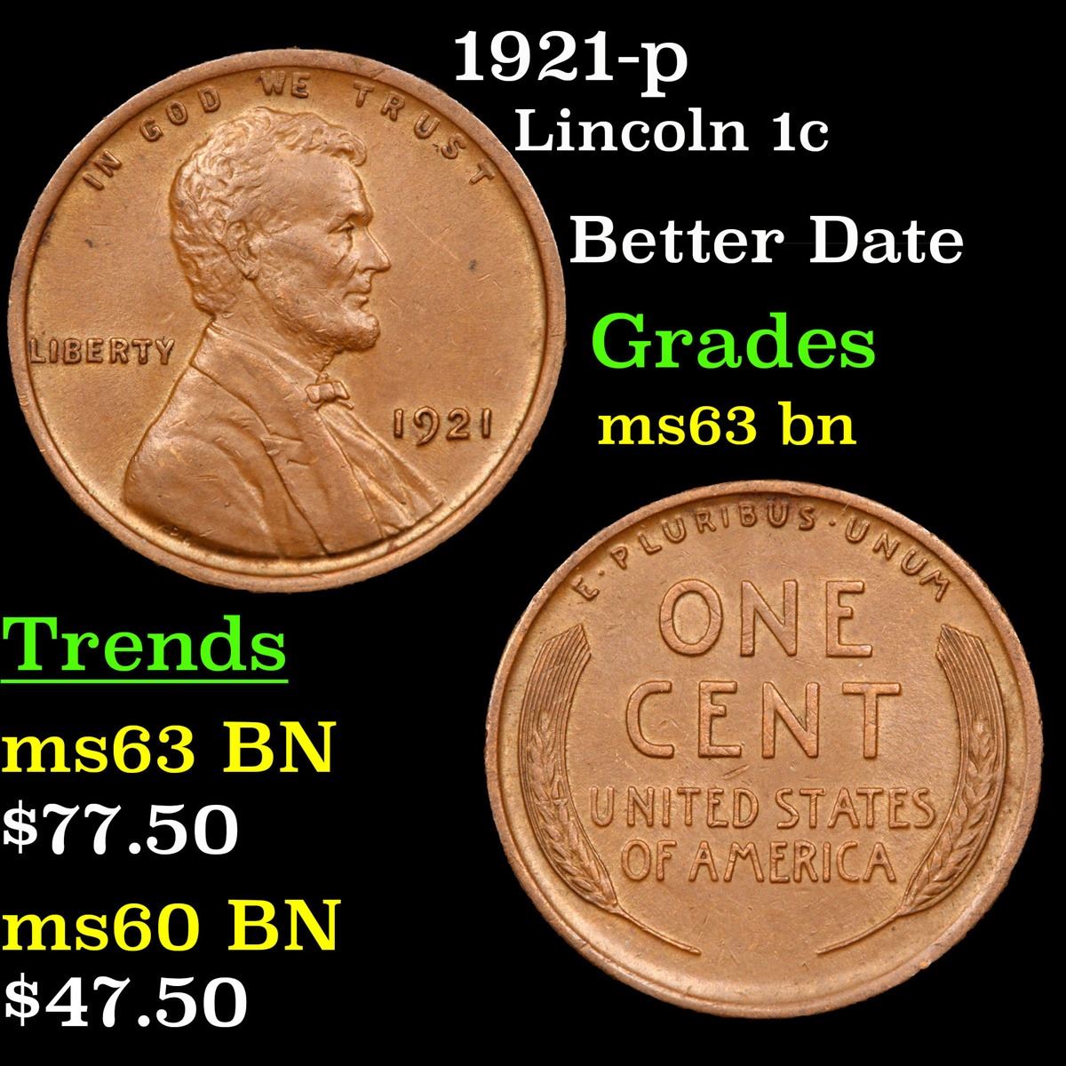 1921-p Lincoln Cent 1c Grades Select Unc BN.