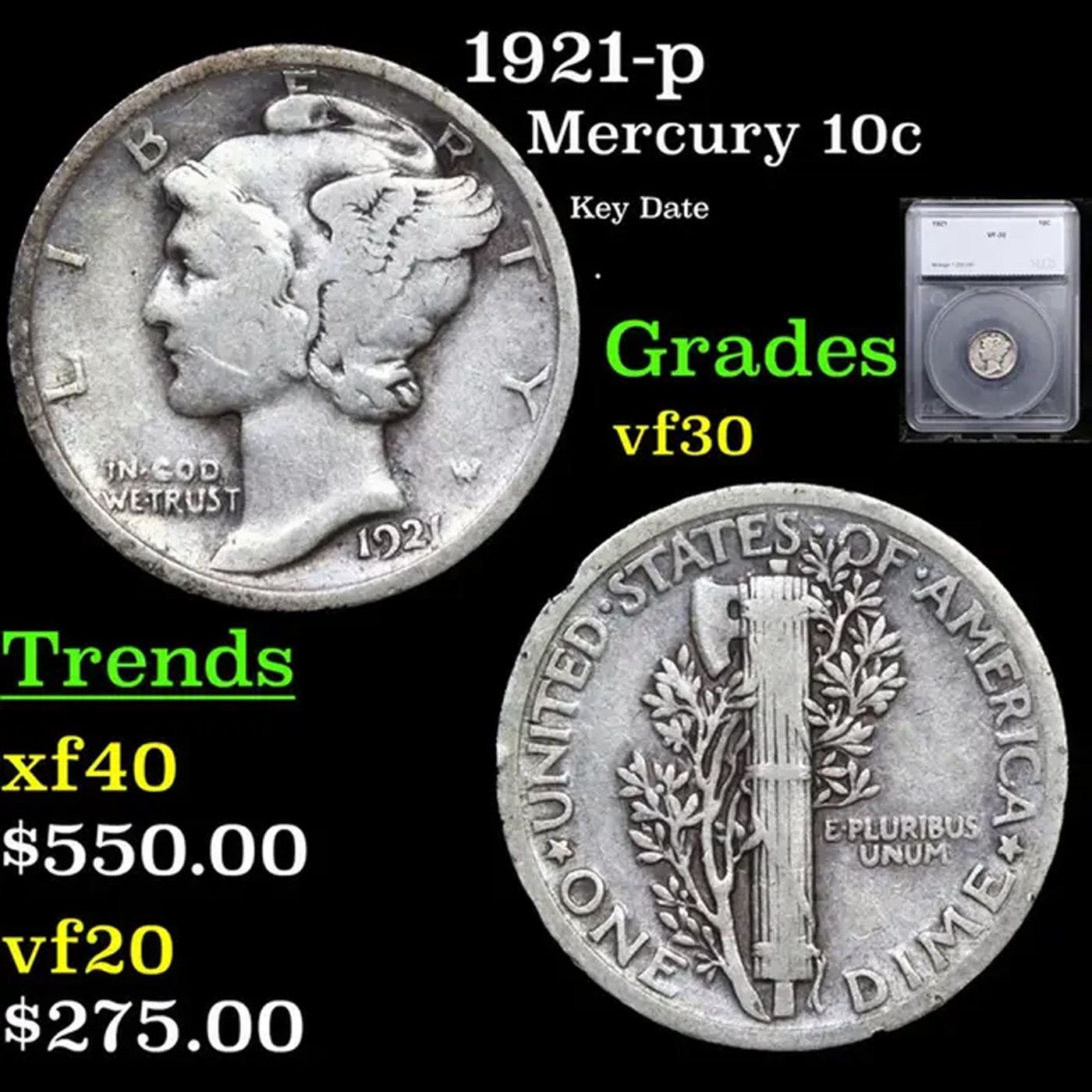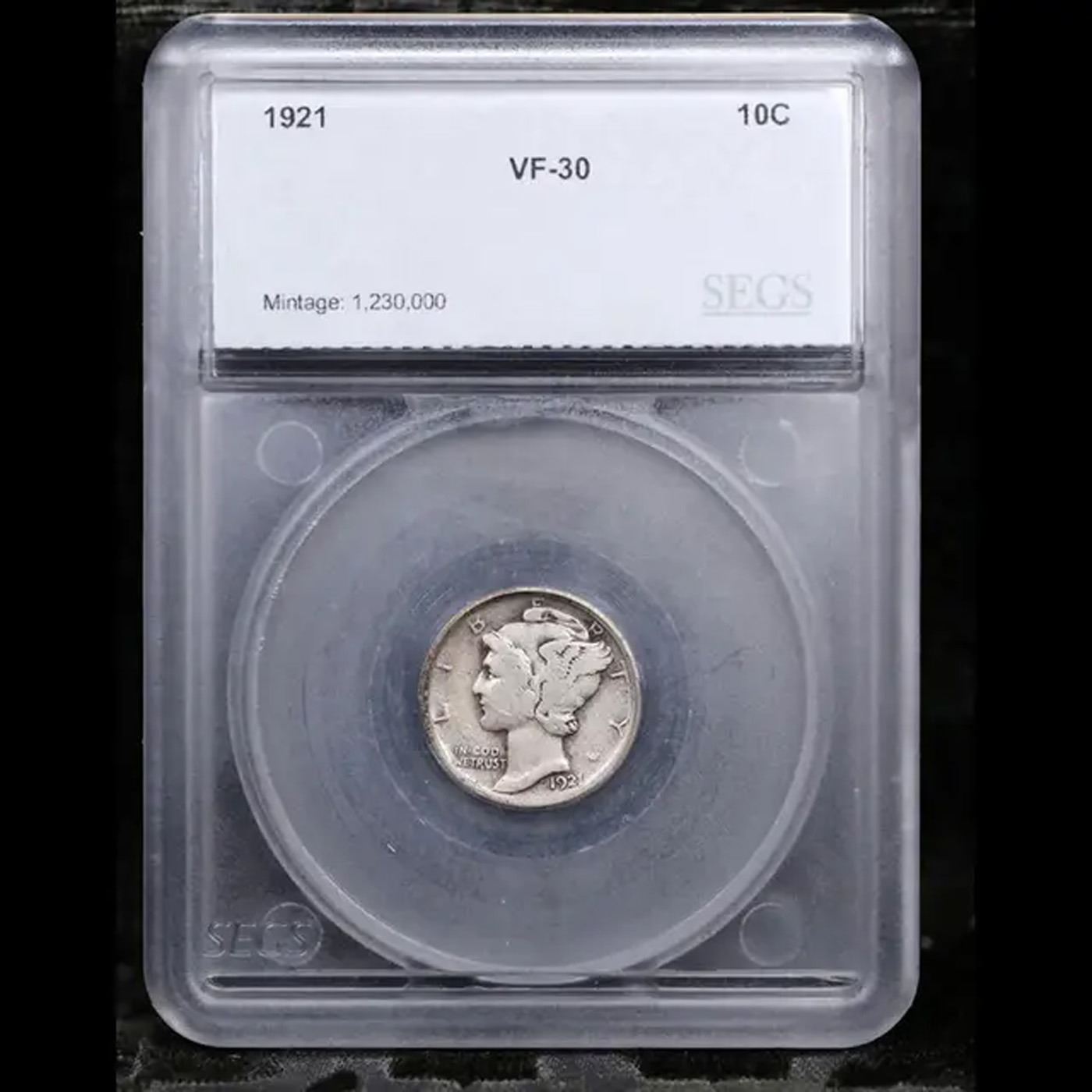1921-p Mercury Dime 10c Graded vf30 By SEGS.
