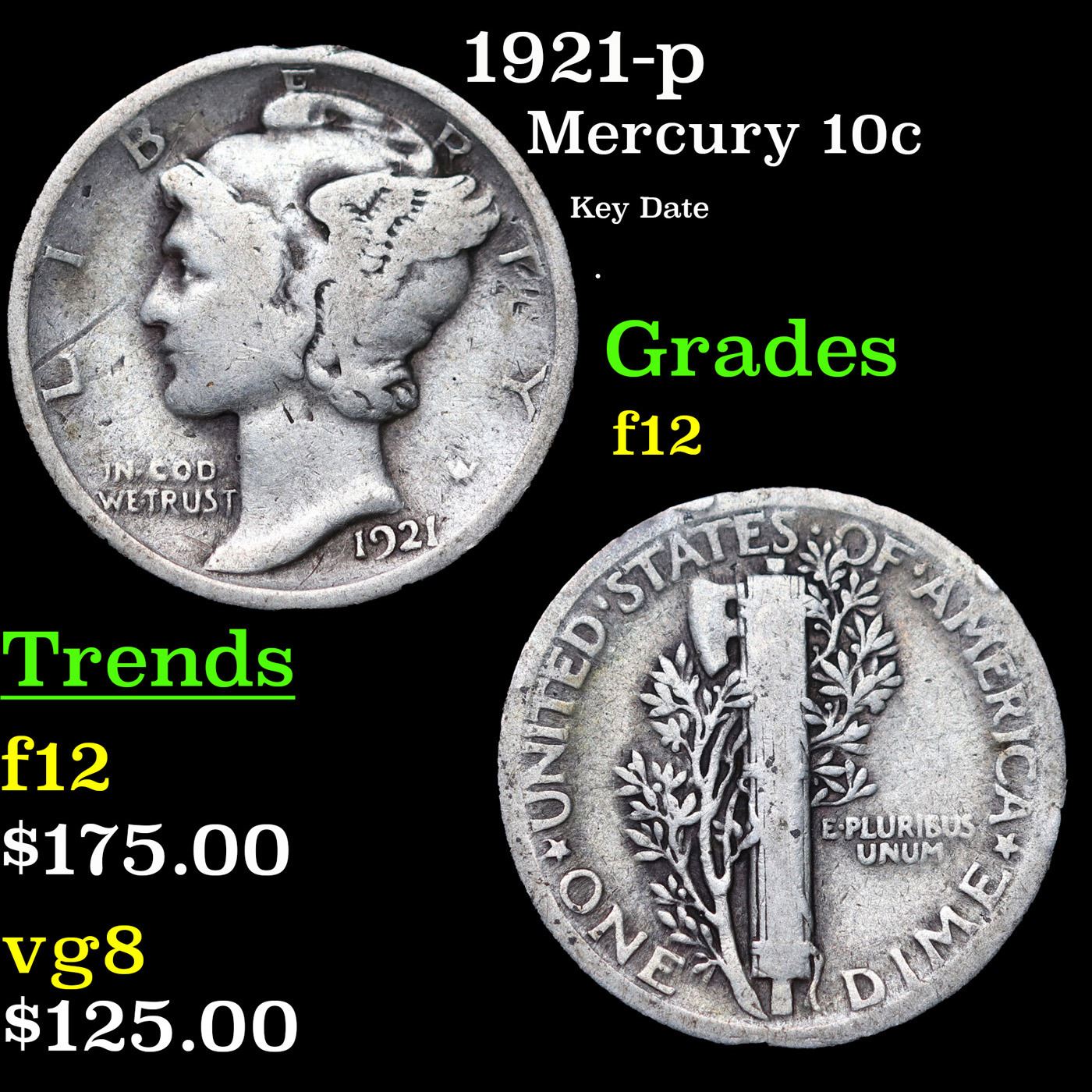 1921-p Mercury Dime 10c Grades f, fine