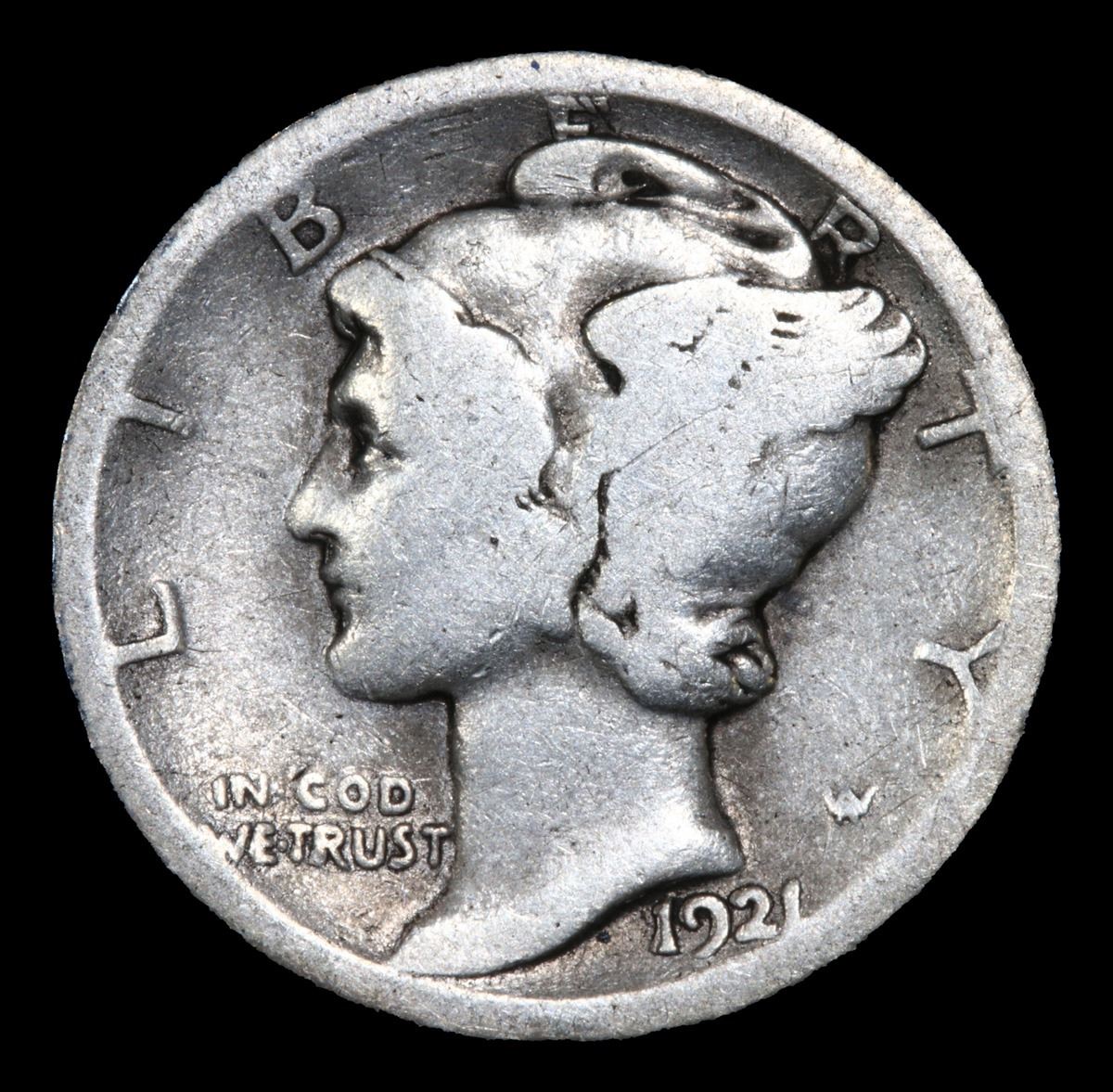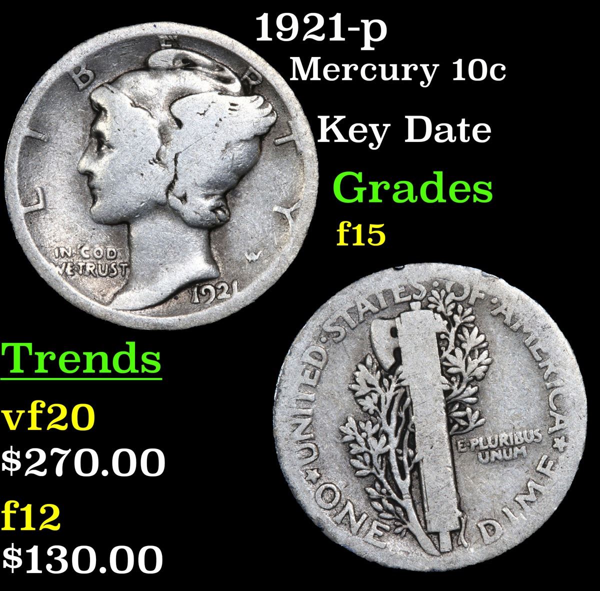 1921-p Key Date . Mercury Dime 10c Grades f+.