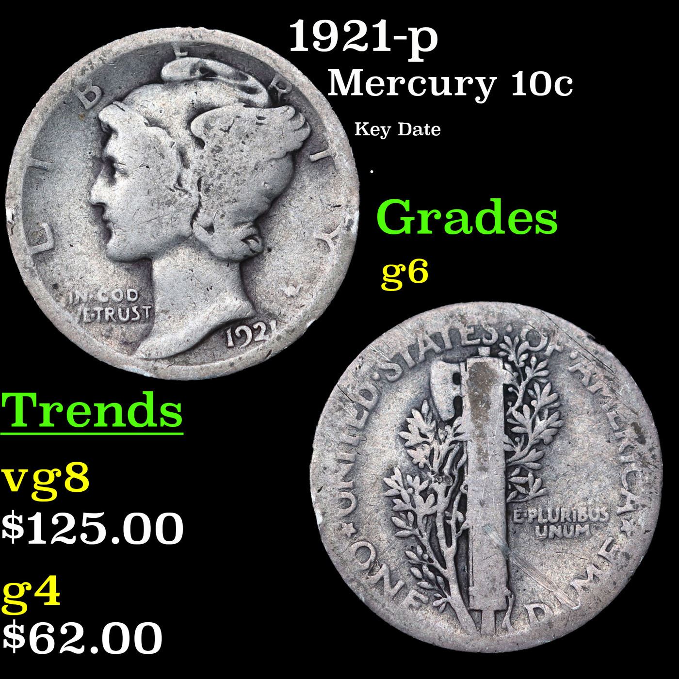 1921-p Mercury Dime 10c Grades g+.