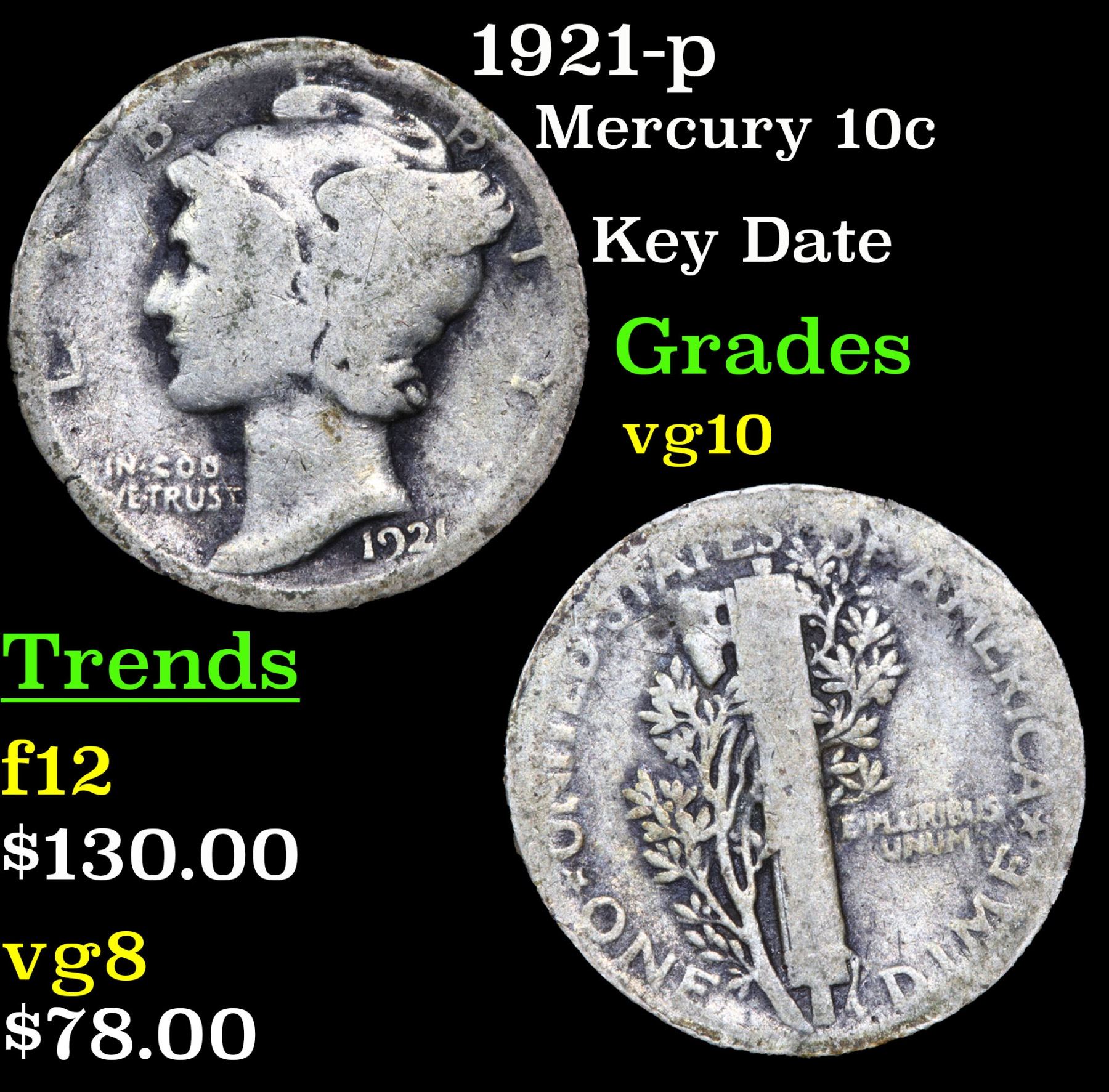 1921-p Key Date . Mercury Dime 10c Grades vg+.