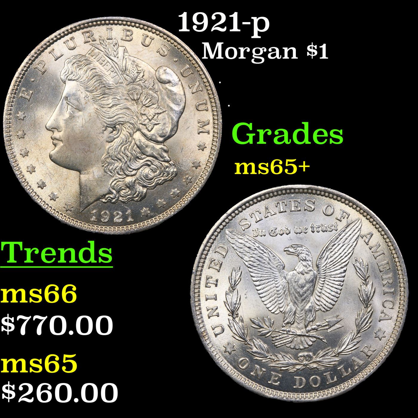1921-p Morgan Dollar $1 Grades GEM+ Unc.