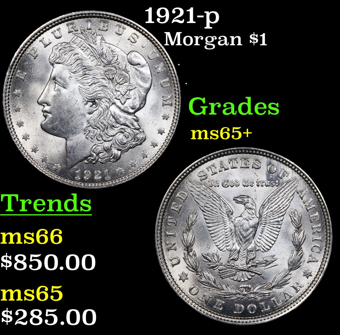 1921-p Morgan Dollar $1 Grades GEM+ Unc.