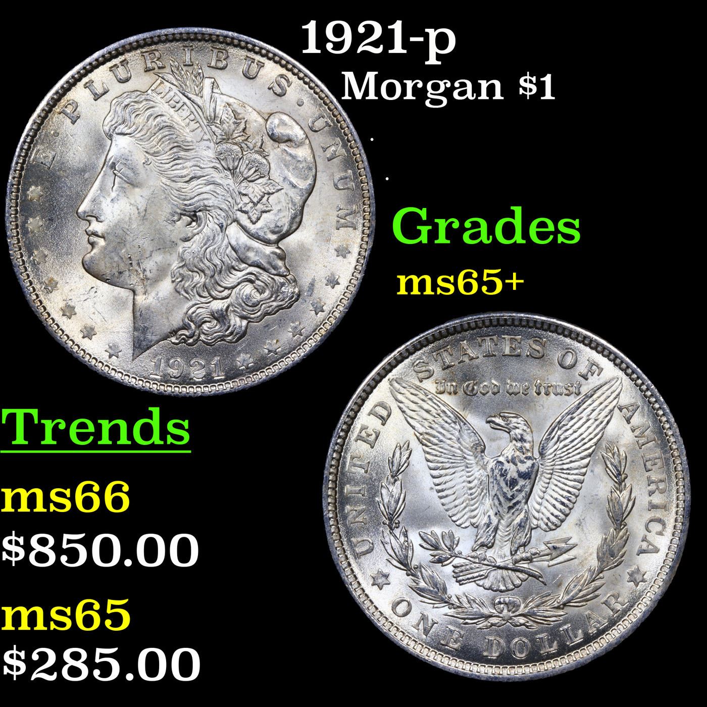 1921-p Morgan Dollar $1 Grades GEM+ Unc.