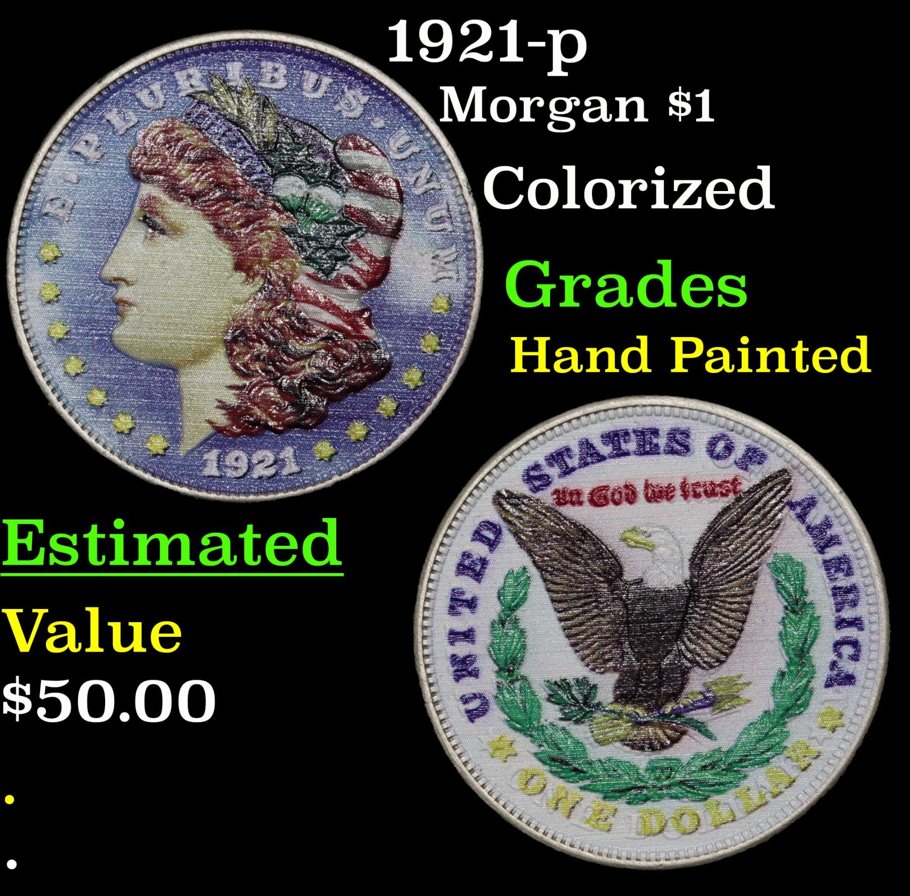 1921-p Colorized . Morgan Dollar $1 Grades Hand Painted.