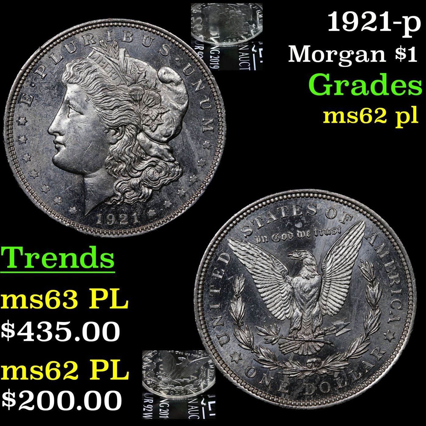 1921-p Morgan Dollar $1 Grades Select Unc PL.
