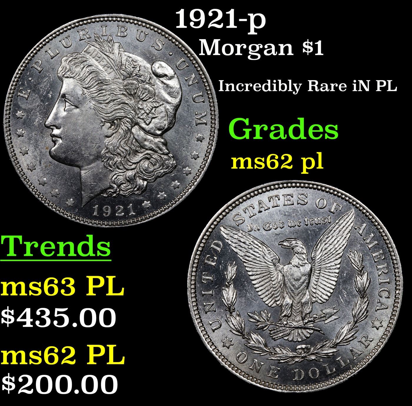 1921-p Morgan Dollar $1 Grades Select Unc PL.