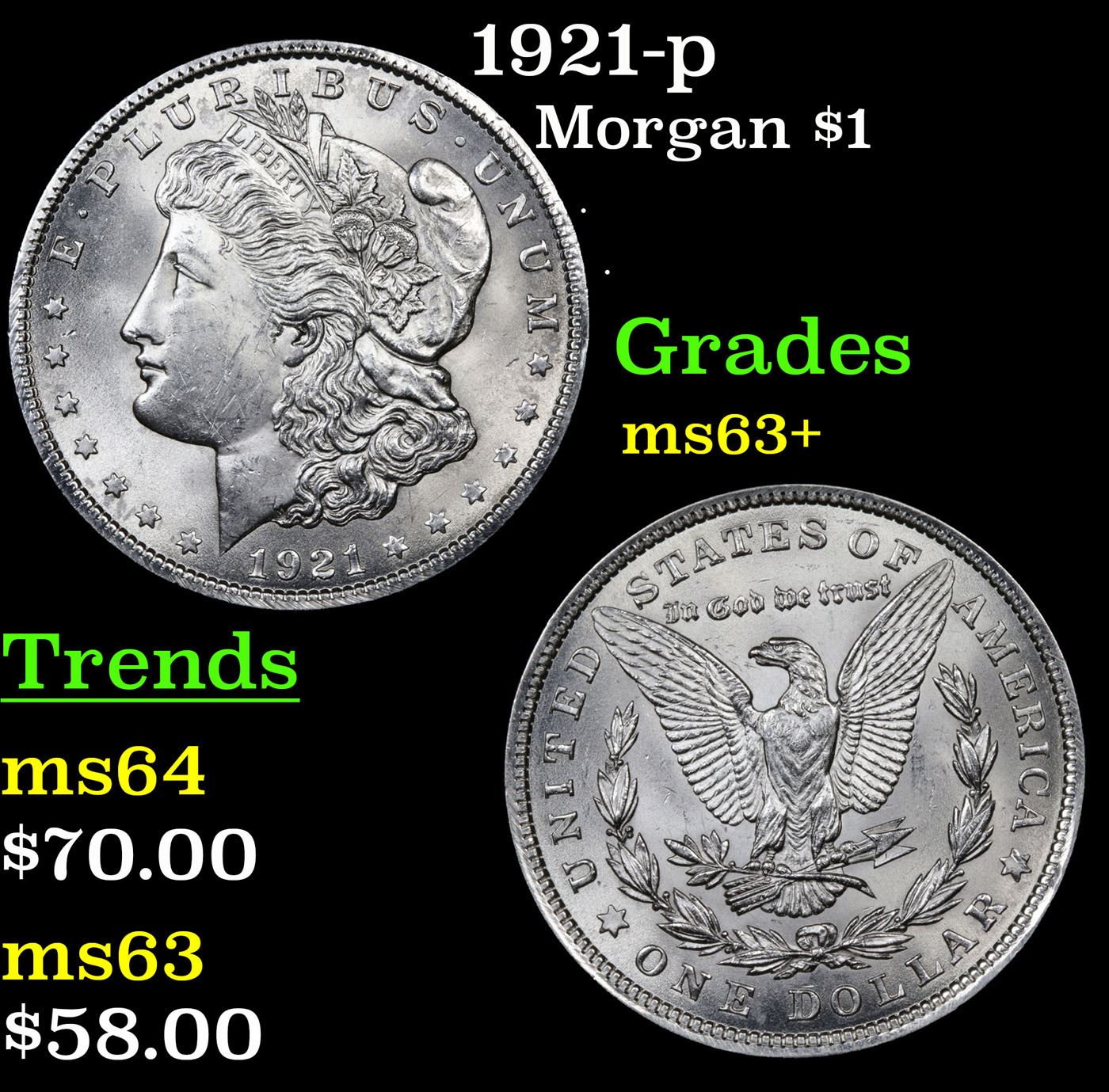 1921-p Morgan Dollar $1 Grades Select+ Unc.