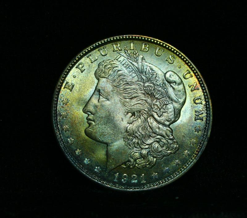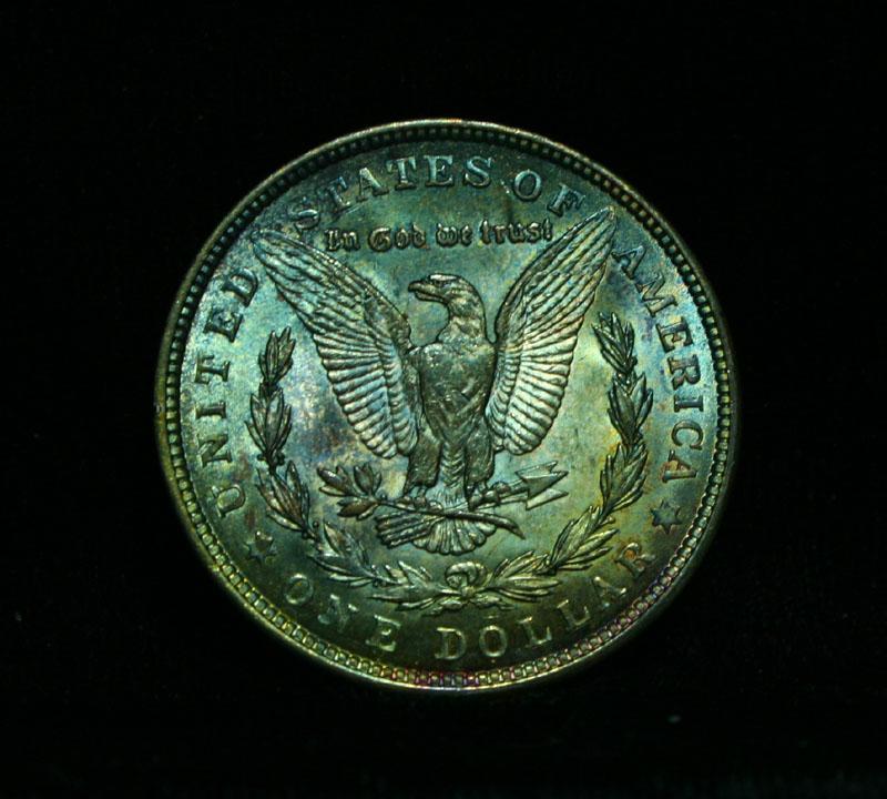 A stunningly toned example with beautiful colors infused throughout. Blues to Purples to reds. A really superior example. Estimated Value $150