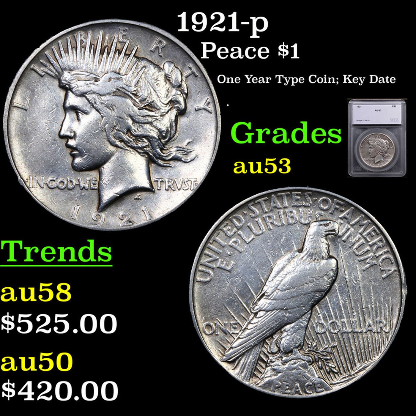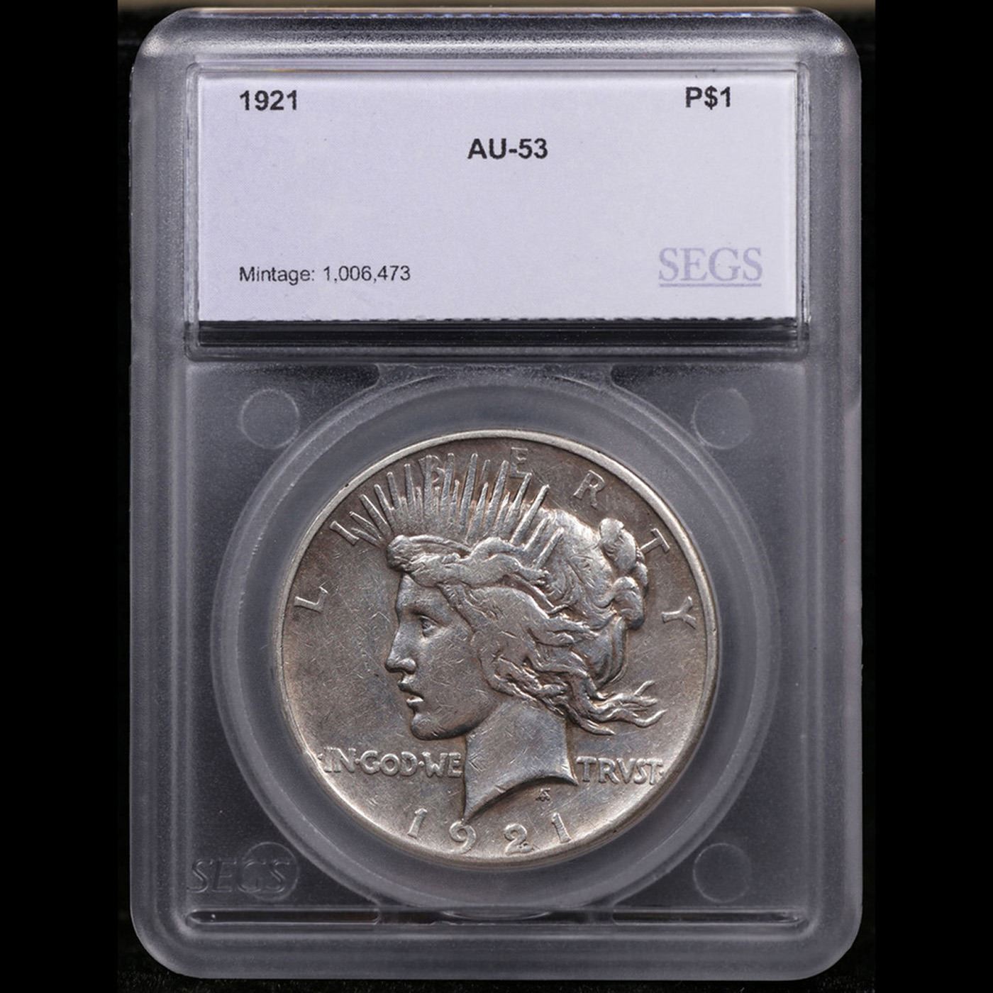 1921-p Peace Dollar $1 Graded au53 By SEGS.