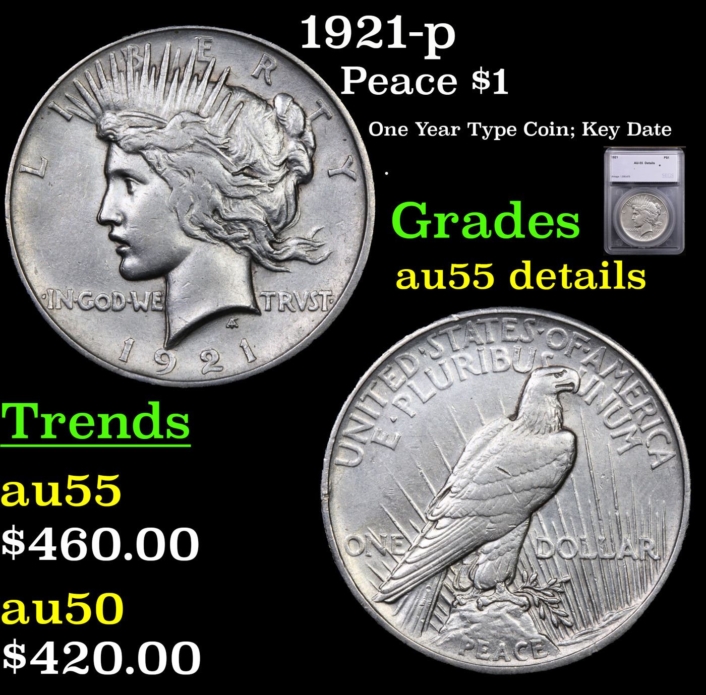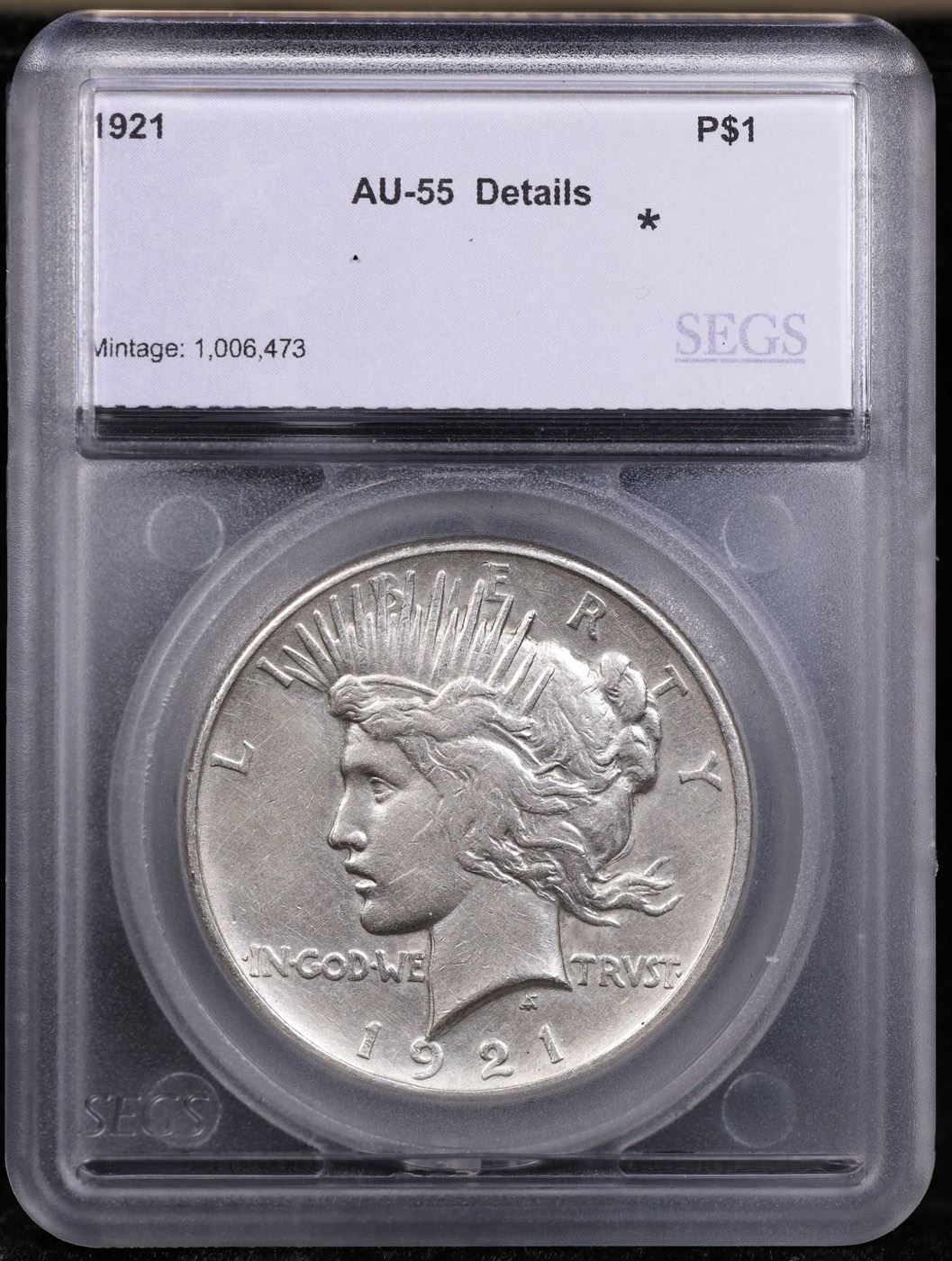 1921-p Peace Dollar $1 Graded au55 details By SEGS.