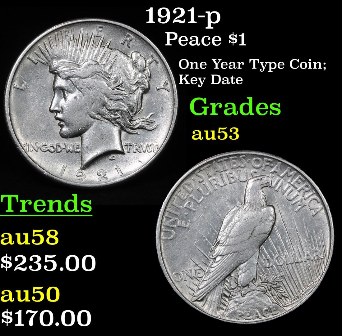 1921-p One Year Type Coin; Key Date . Peace Dollar $1 Grades Select AU.