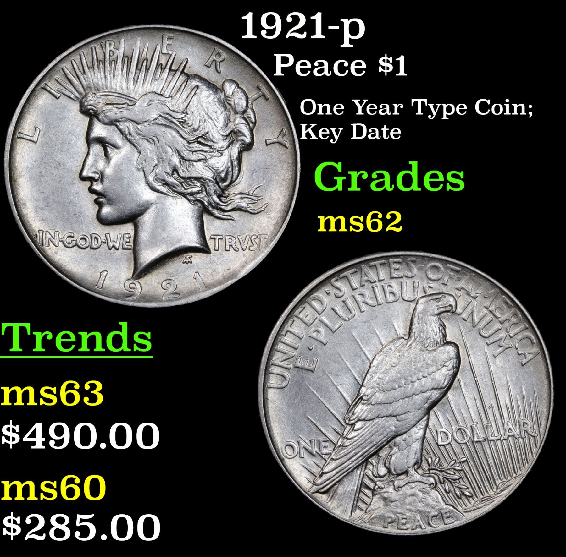 1921-p One Year Type Coin; Key Date . Peace Dollar $1 Grades Select Unc.