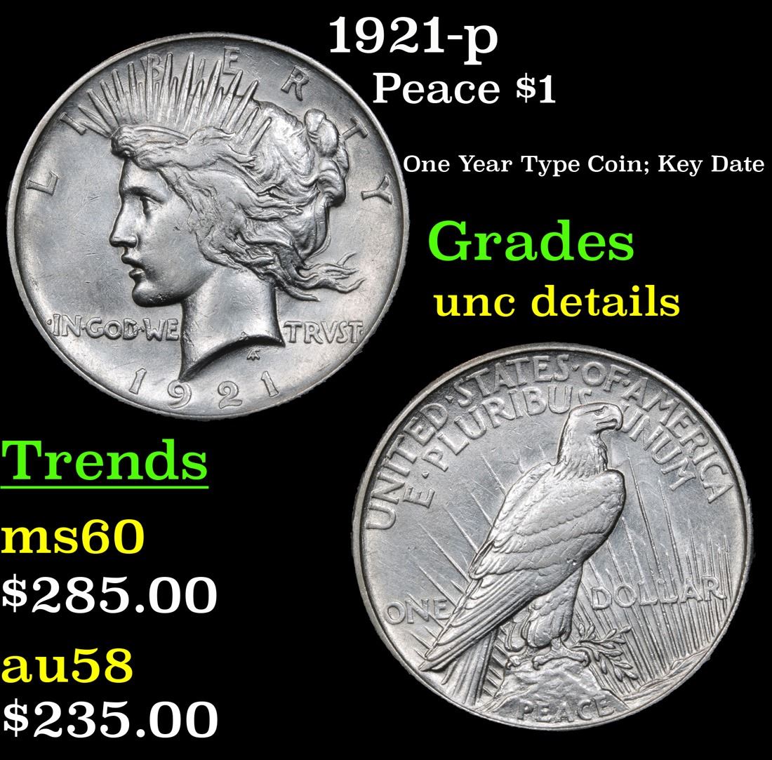 1921-p One Year Type Coin; Key Date . Peace Dollar $1 Grades Unc Details.