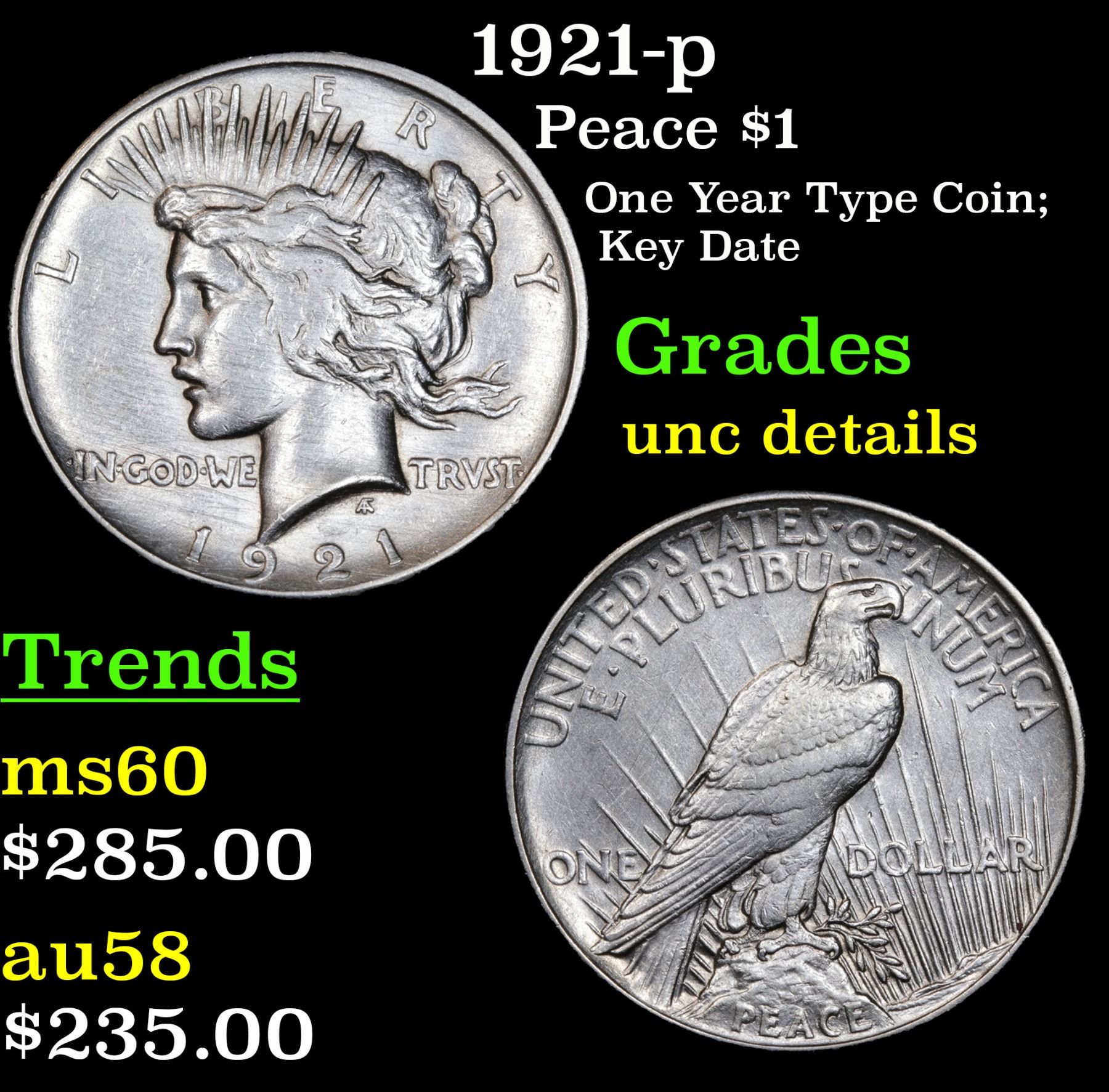 1921-p One Year Type Coin; Key Date . Peace Dollar $1 Grades Unc Details.