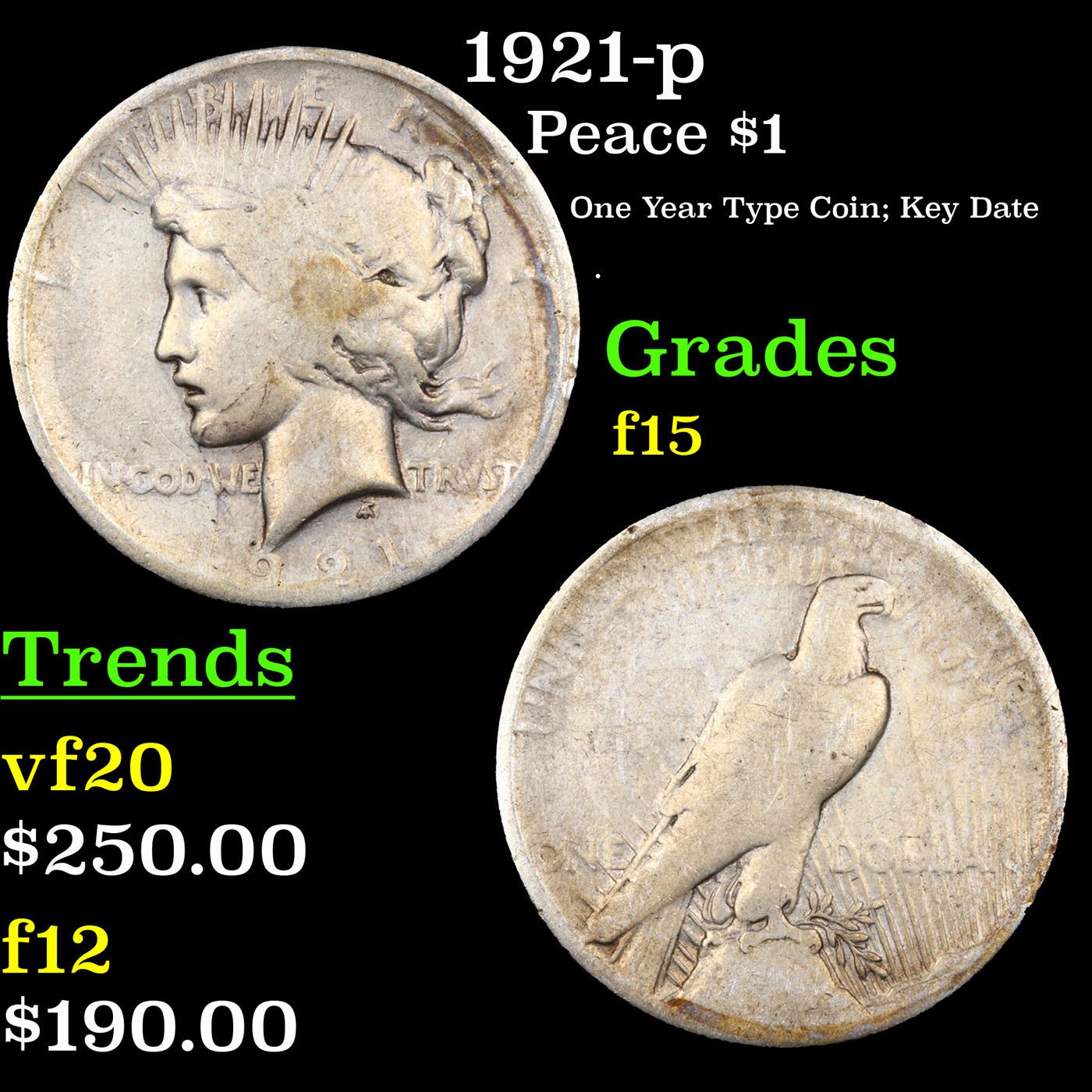1921-p Peace Dollar $1 Grades f+.