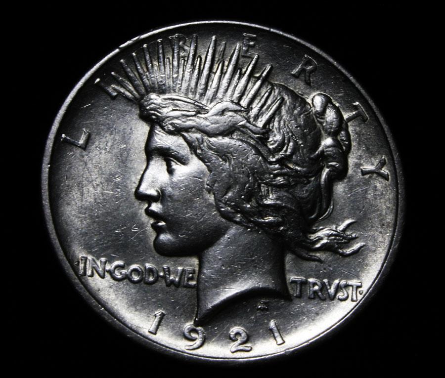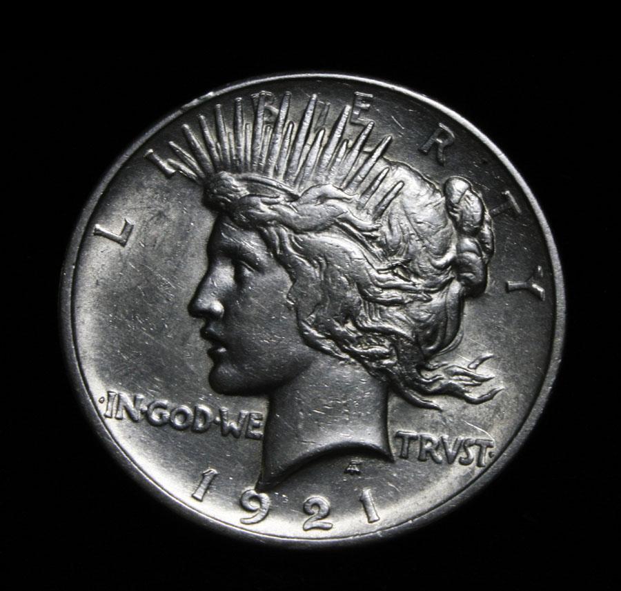 Nicely Struck 1921 Peace Dollar. One year type coin, always in demand as you need it to complete a type set. The High Relief design was discontinued after 1921 due to an inability to consistently Create a fully struck coin. Coin World's Coin Values lists au58 at $200 and The Wholesale Greysheet lists au50 at $135 Estimated Value $150