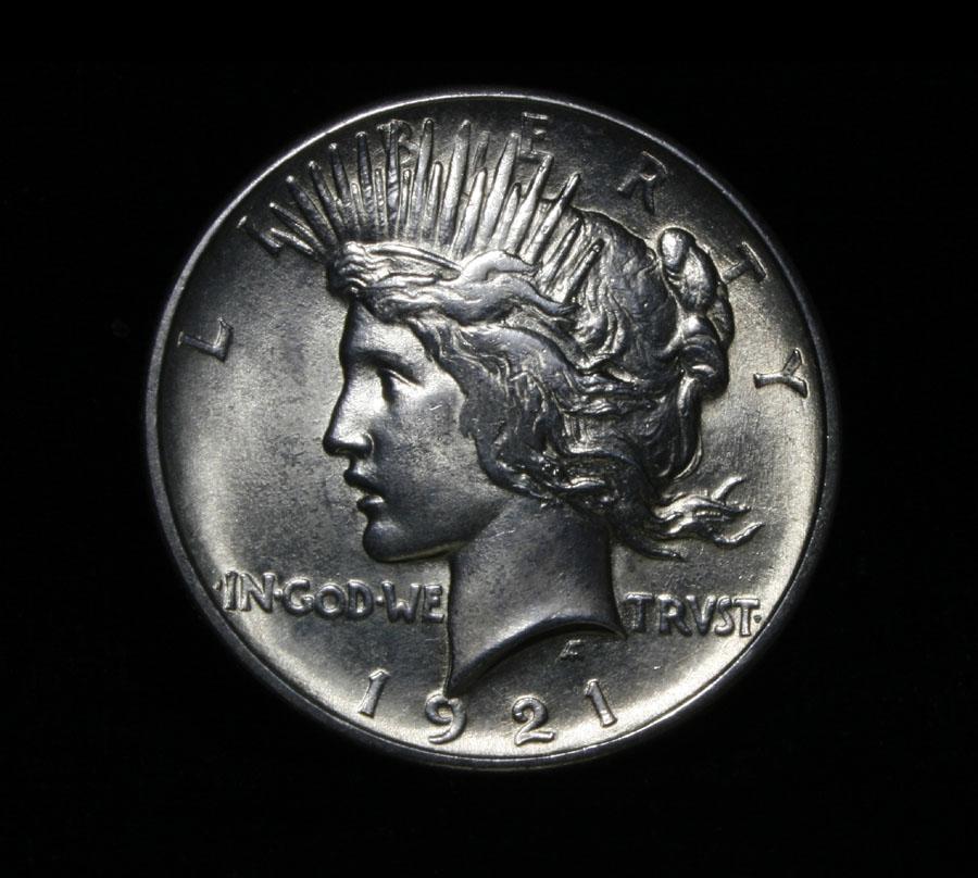 Nicely Struck 1921 Peace Dollar. One year type coin, always in demand as you need it to complete a type set. The High Relief design was discontinued after 1921 due to an inability to consistently Create a fully struck coin. Coin World's Coin Values lists ms63 at $500 and The Wholesale Greysheet lists ms63 at $350 Estimated Value $400