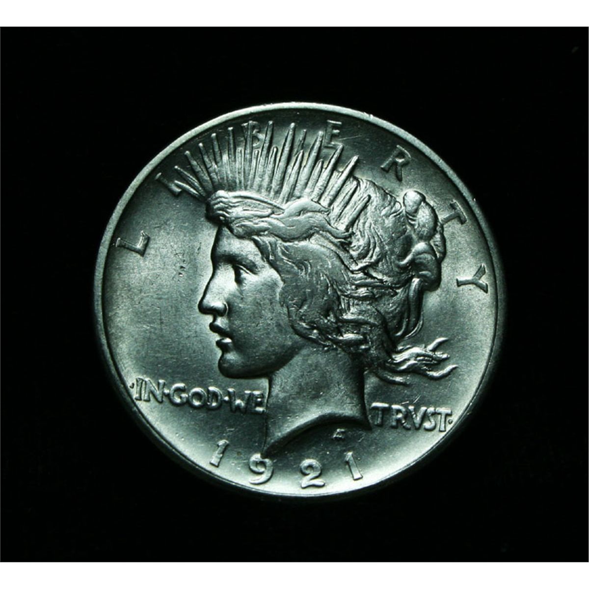 Nicely Struck 1921 Peace Dollar. One year type coin, always in demand as you need it to complete a type set. The High Relief design was discontinued after 1921 due to an inability to consistently Create a fully struck coin. Coin World's Coin Values lists ms63 at $500 and The Wholesale Greysheet lists ms63 at $350 Estimated Value $400