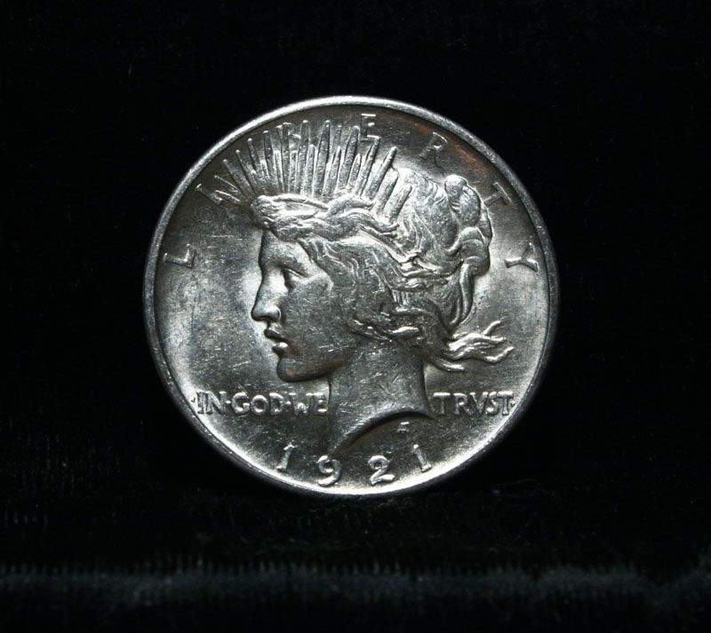 Nicely Struck 1921 Peace Dollar. Good example with some light toning. One year type coin, always in demand as you need it to complete a type set. The High Relief design was discontinued after 1921 due to an inability to consistently Create a fully struck coin. I will offer my personal buy back guarantee, that this coin is all original and will not come back Ungradeable by any major grading service. NGC's Price Guide lists ms63 at $438 and The Wholesale Greysheet lists ms63 at $350. Estimated Value $400