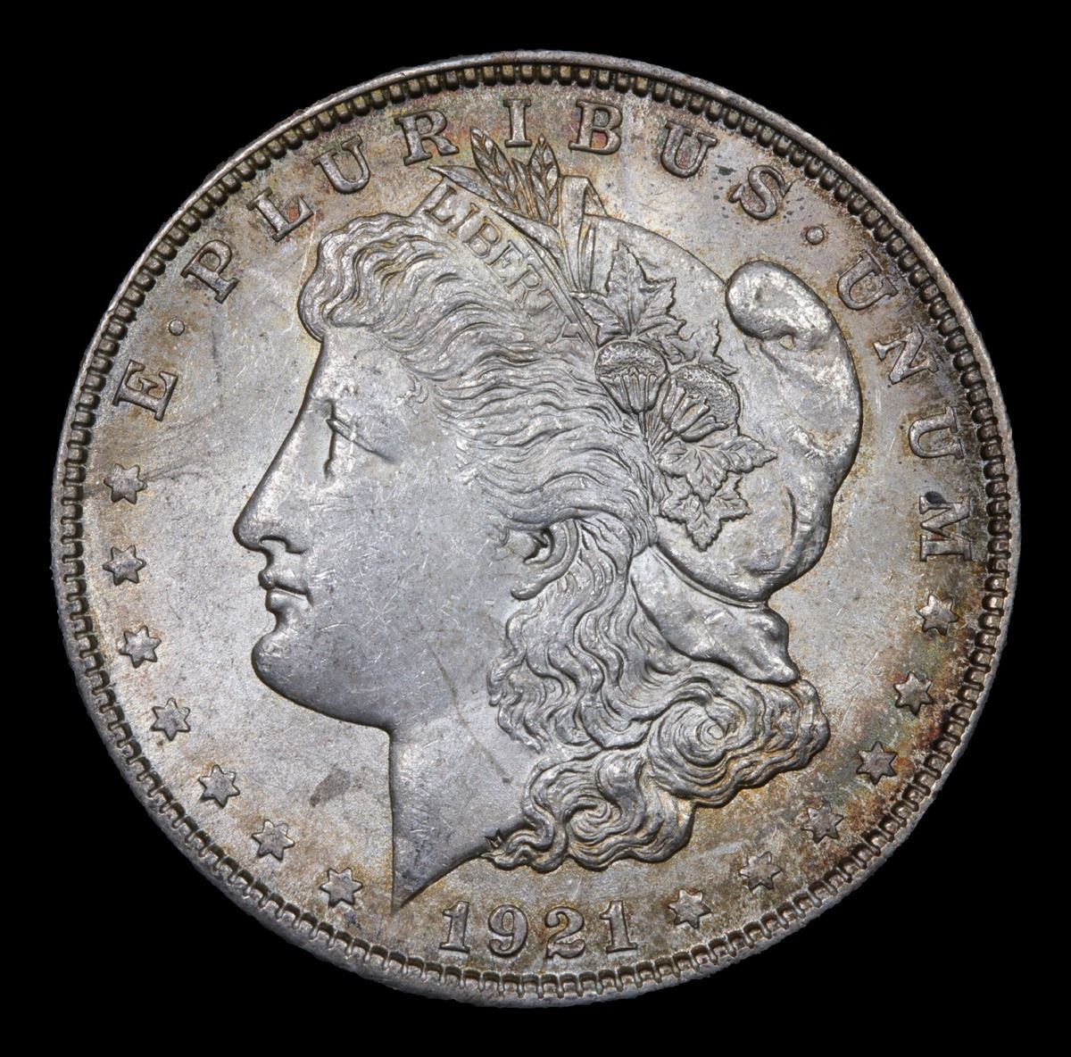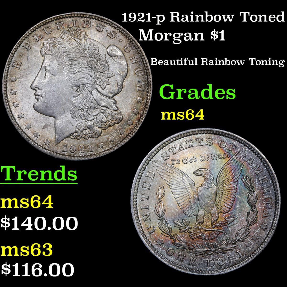 1921-p Rainbow Toned Morgan Dollar $1 Grades Choice Unc.