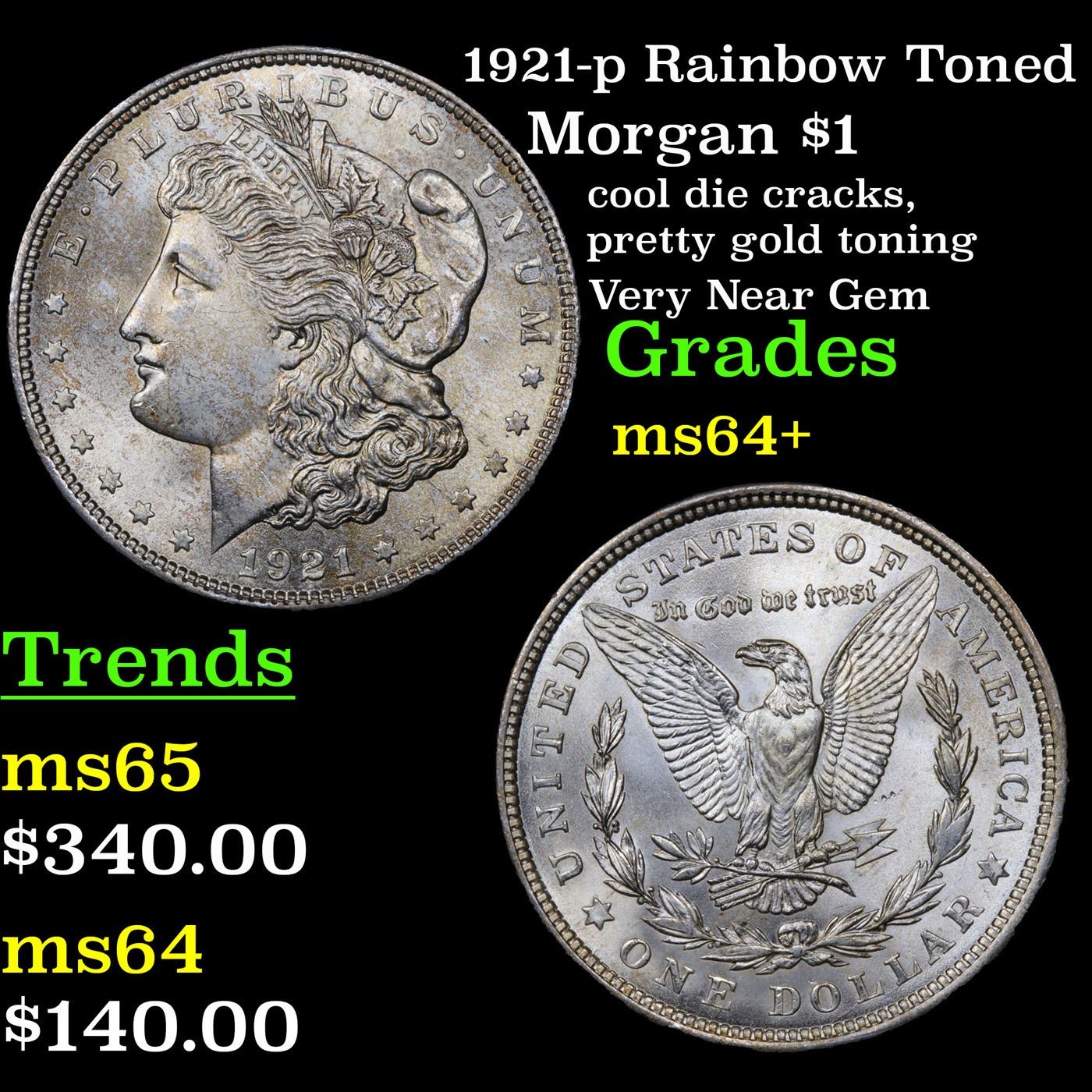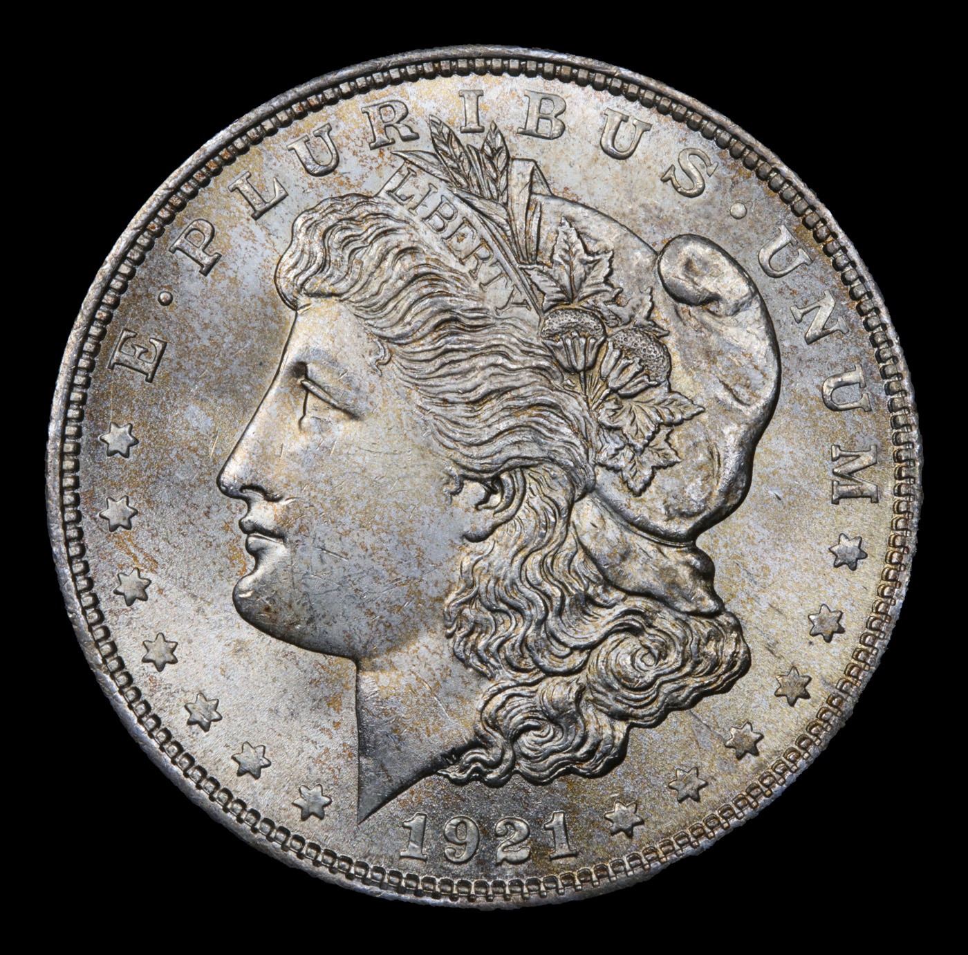 1921-p Rainbow Toned Morgan Dollar $1 Grades Choice+ Unc.