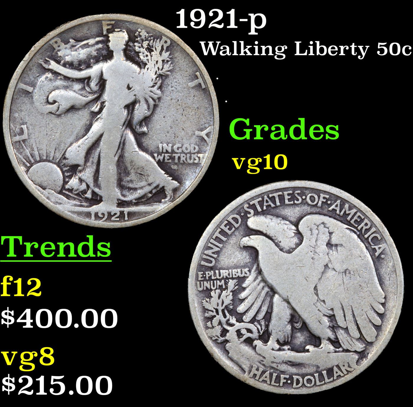 1921-p Walking Liberty Half Dollar 50c Grades vg+.