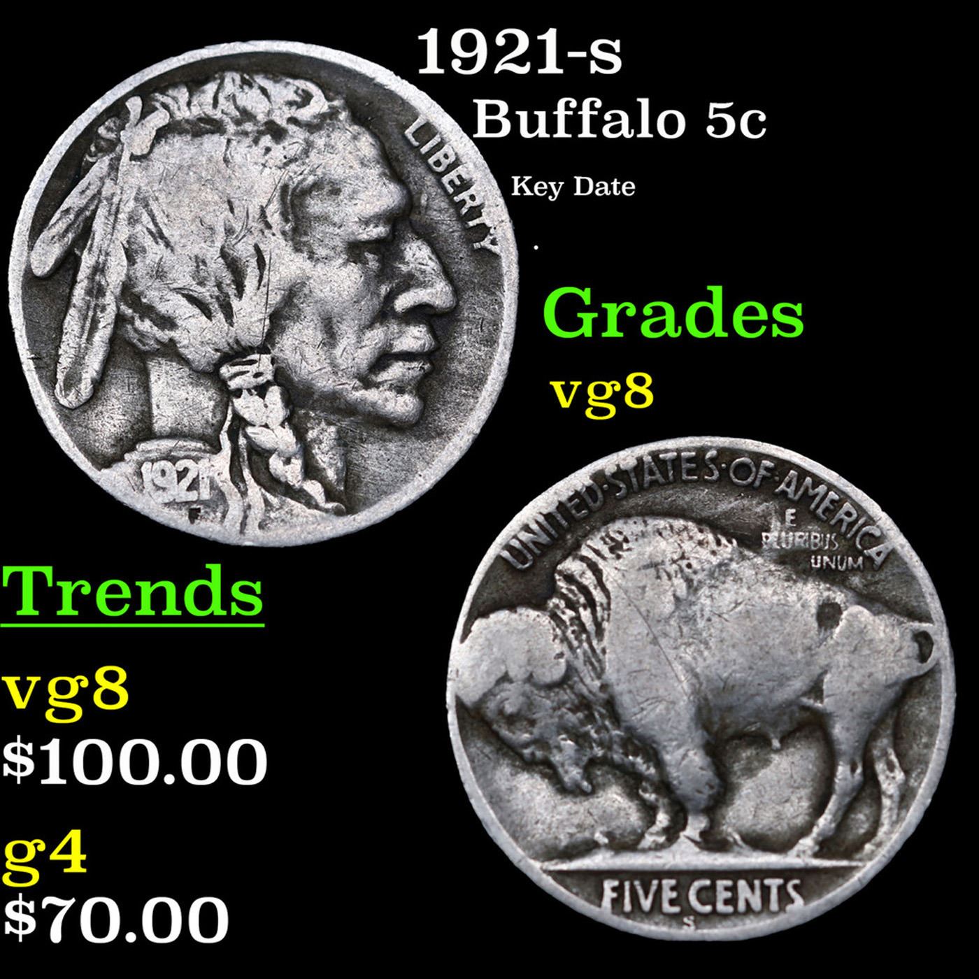 1921-s Buffalo Nickel 5c Grades vg, very good.