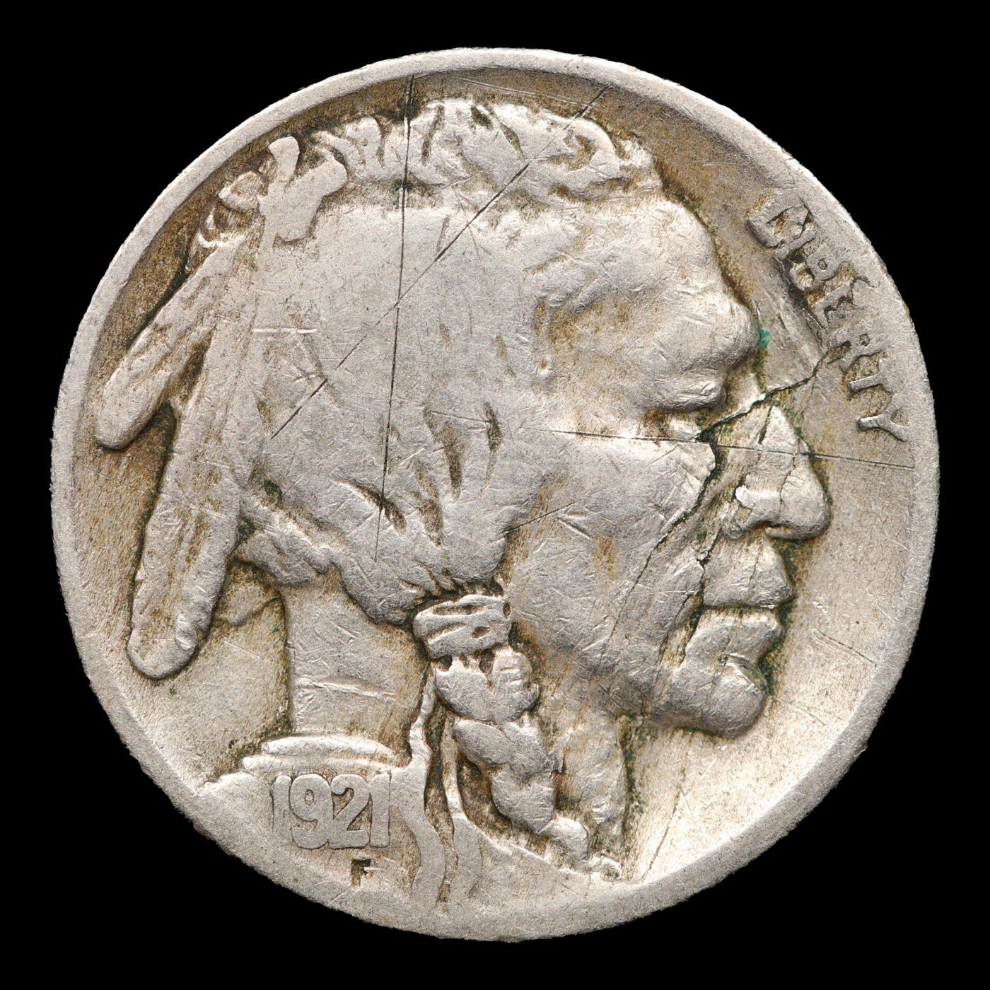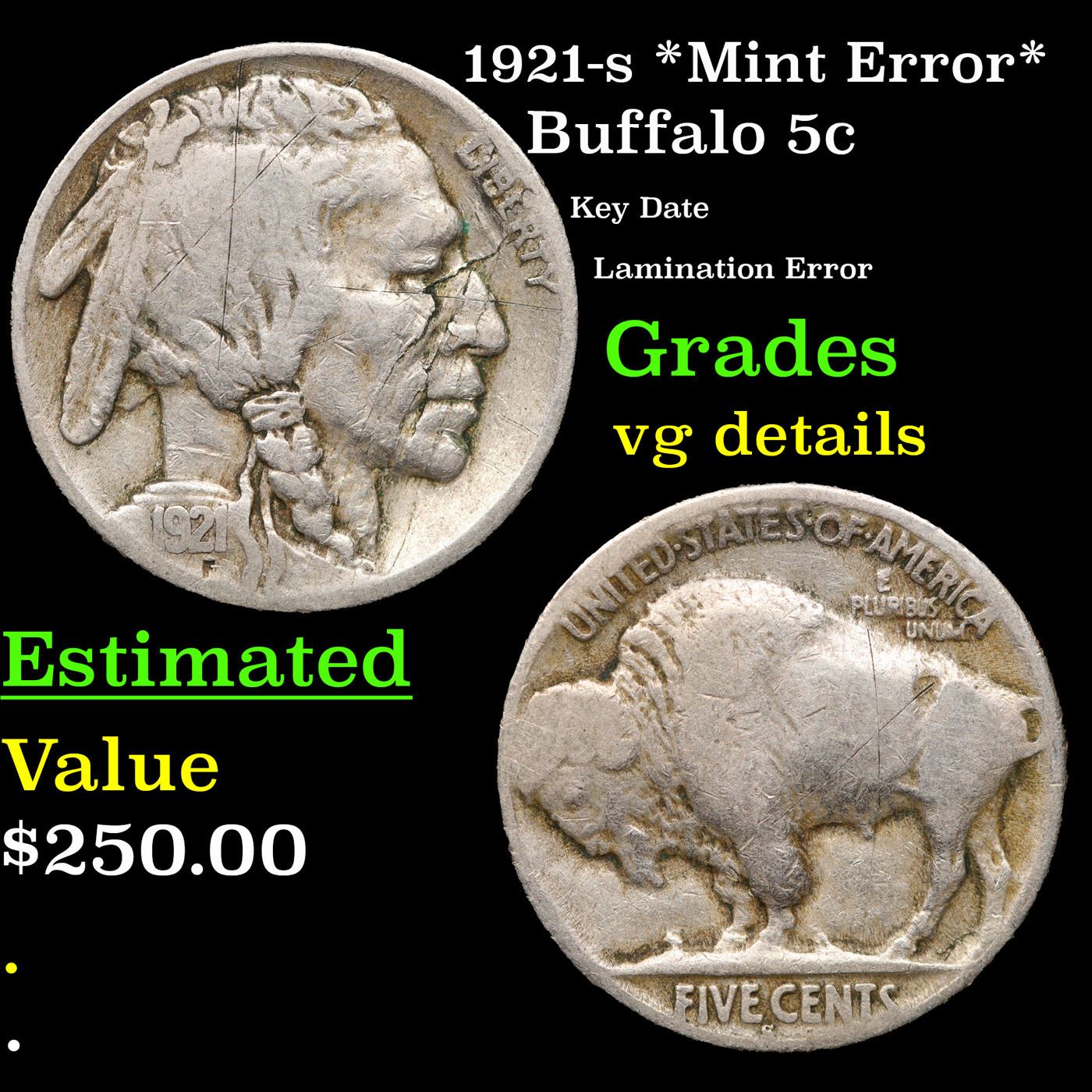 1921-s *Mint Error* Buffalo Nickel 5c Grades vg details.