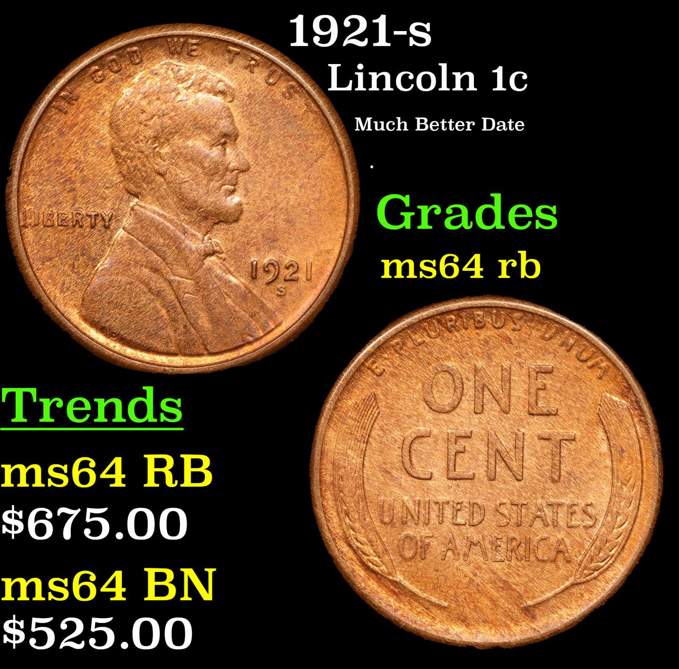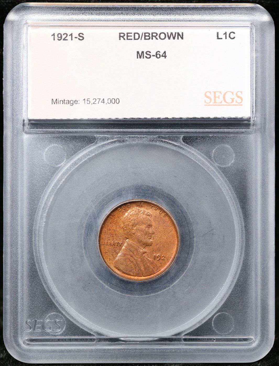 1921-s Lincoln Cent 1c Graded ms64 rb By SEGS.