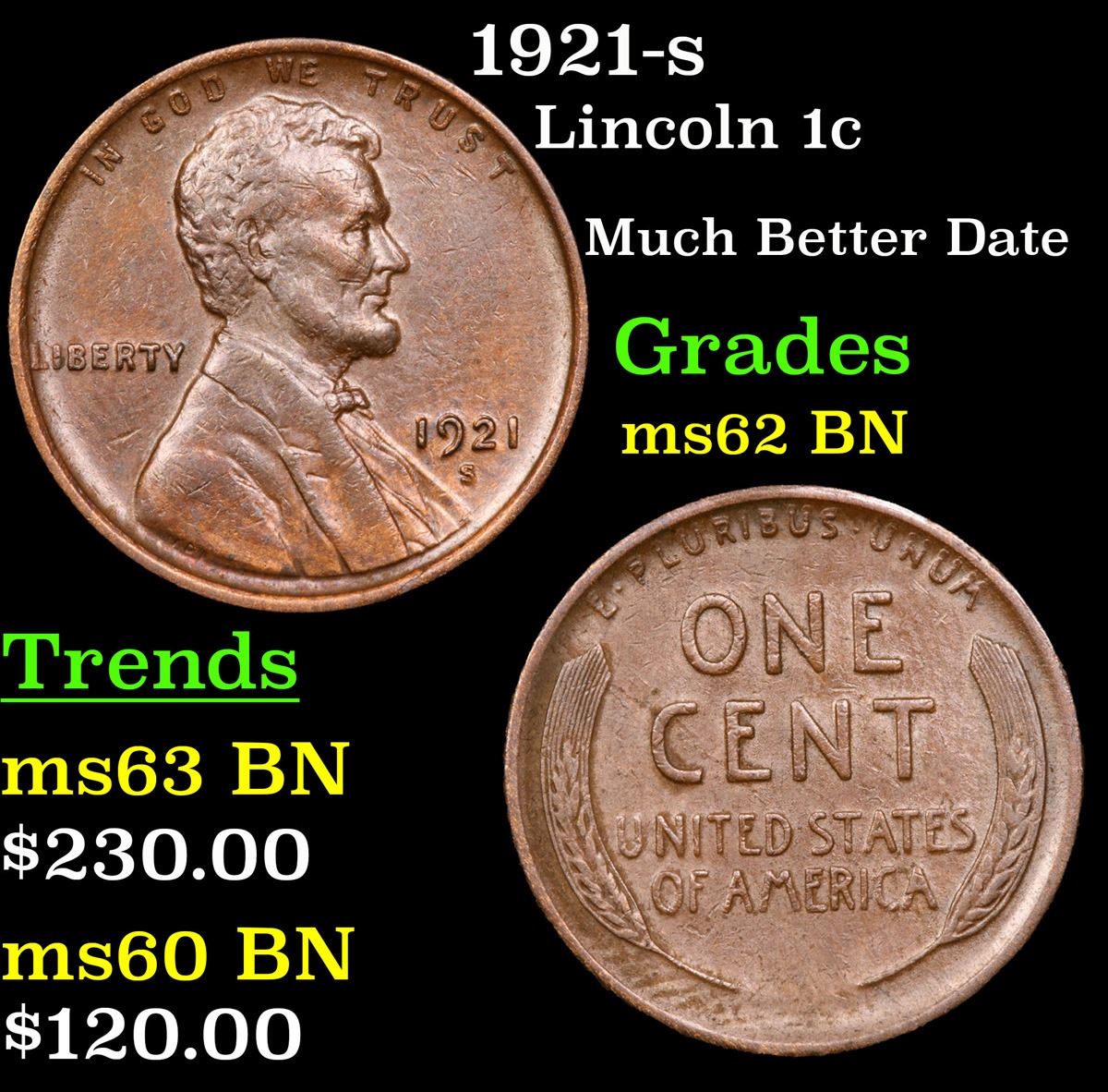 1921-s Much Better Date . Lincoln Cent 1c Grades Select Unc BN.