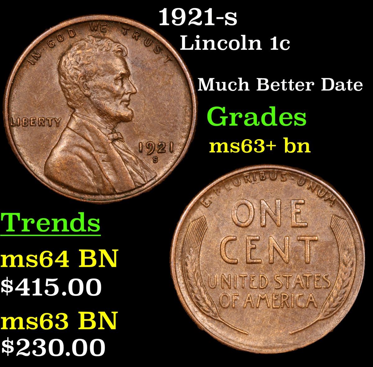1921-s Much Better Date . Lincoln Cent 1c Grades Select+ Unc BN.