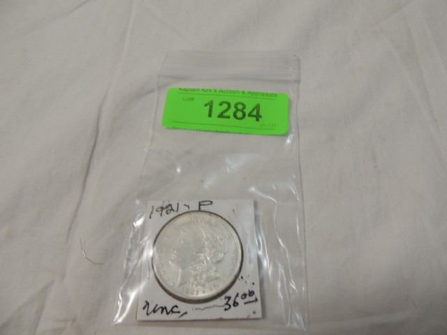NICE, UNCIRCULATED CONDITION, AS SHOWN, 1921P MORGAN DOLLAR COIN.