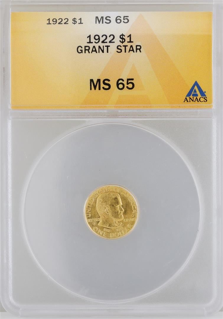 One 1922 $1 Grant/Star Gold Coin. ANACS certified. ANACS Appraised.