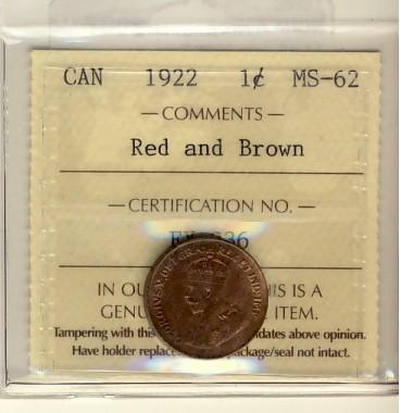 1922 1¢ ICCS MS62RB.