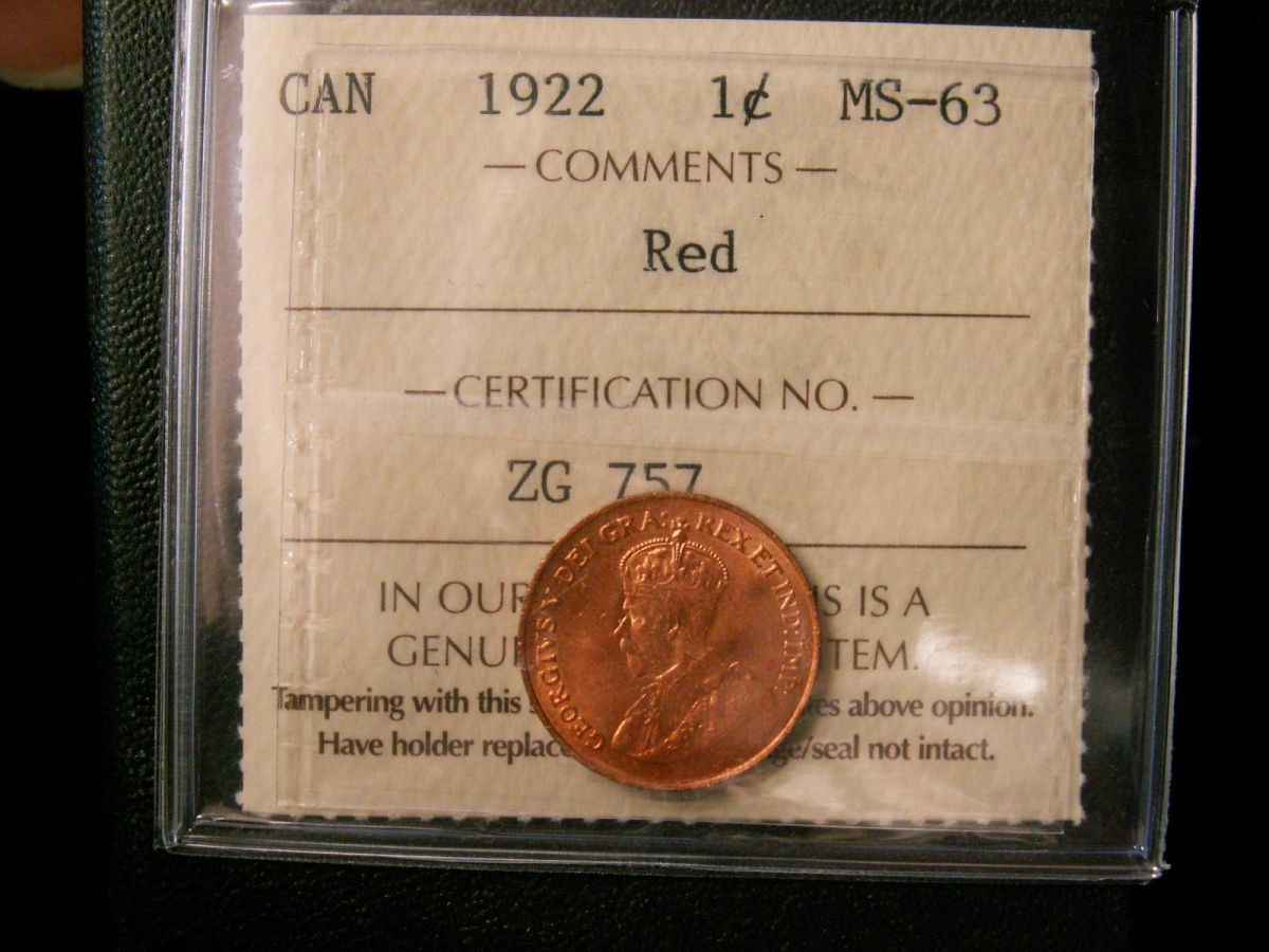 1922 1¢ ICCS MS63RD. Lustrous 100% red.