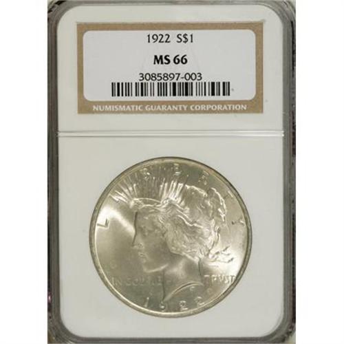 <B>1922 $1 MS66 NGC.</B></I> NGC Census: (612/10). PCGS Population (419/20). Mintage: 51,737,000. Numismedia Wsl. Price for NGC/PCGS coin in MS66: $540. (#7357)<BR><BR><B>Coin Engraver:</B> Anthony de Francisci<BR><BR><b>Shipping:</b> Coins & Currency (<a target="_blank" href="http://www.heritageauctions.com/common/shipping.php">view shipping information</a>)