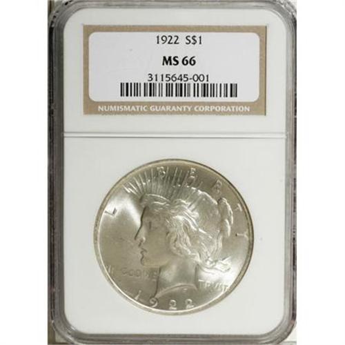 <B>1922 $1 MS66 NGC.</B></I> NGC Census: (612/10). PCGS Population (424/20). Mintage: 51,737,000. Numismedia Wsl. Price for NGC/PCGS coin in MS66: $540. (#7357)<BR><BR><B>Coin Engraver:</B> Anthony de Francisci<BR><BR><b>Shipping:</b> Coins & Currency (<a target="_blank" href="http://www.heritageauctions.com/common/shipping.php">view shipping information</a>)
