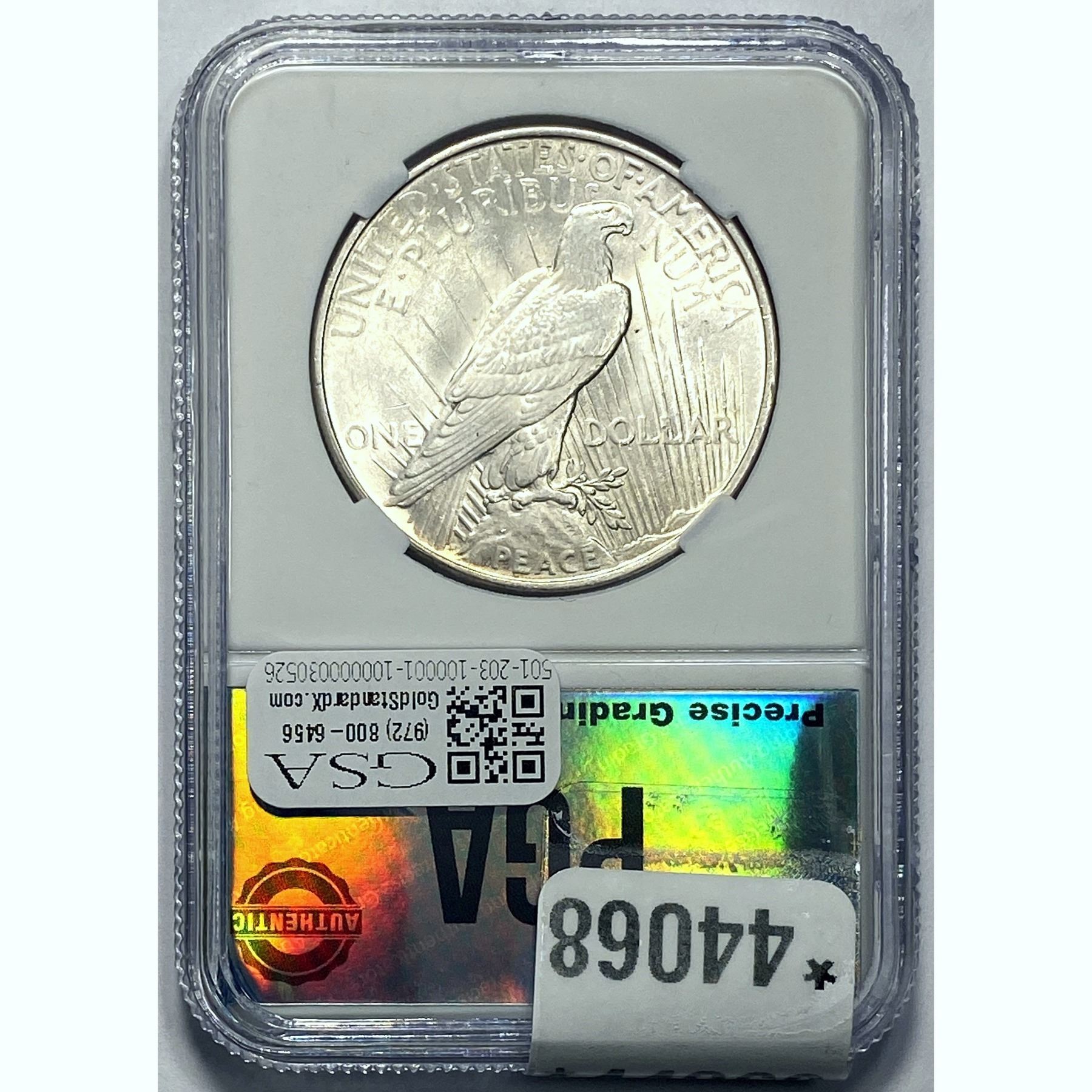 l. All non-certified coins and currency are guaranteed genuine, but are not guaranteed as to grade, since grading is a matter of opinion, an art and not a science, and therefore the description rendered by GSA or any third-party grading service may not agree with the opinion of others (including trained experts), and the same expert may not grade the same item with the same grade at two different times. GSA may, but is not obligated to, express an opinion as to non-certified numismatic items, in GSA’s opinion, or by its employees’ experience and the current interpretation of the American Numismatic Association’s standards as of the date the catalog was prepared. There is no guarantee or warranty expressed or implied that the grading opinions utilized by GSA, if any, will meet the standards of any grading service at any time in the future.