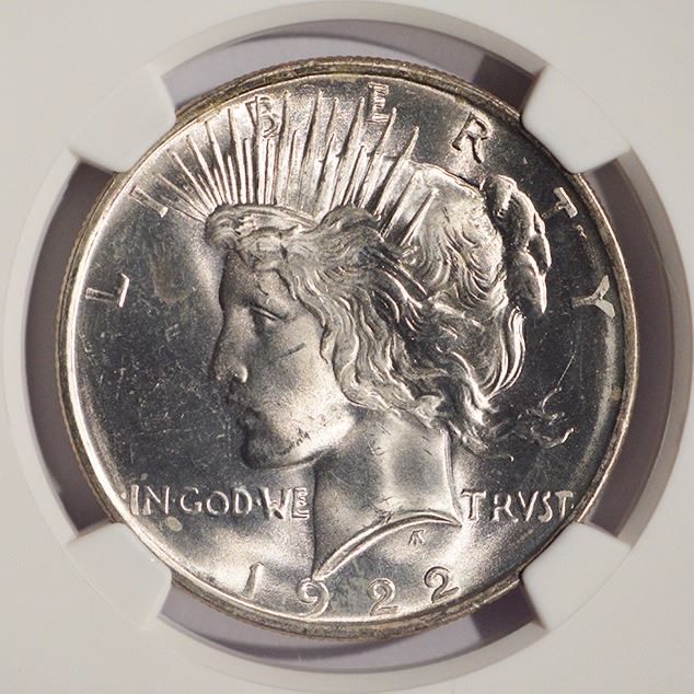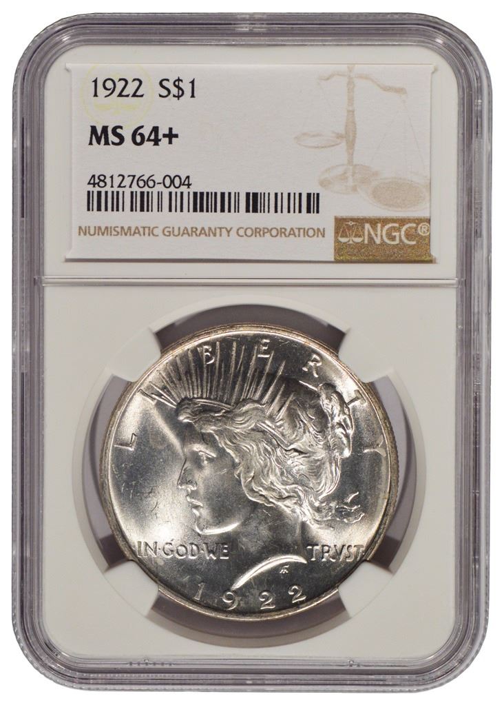 One 1922 $1 Peace Silver Dollar Coin NGC 64+.