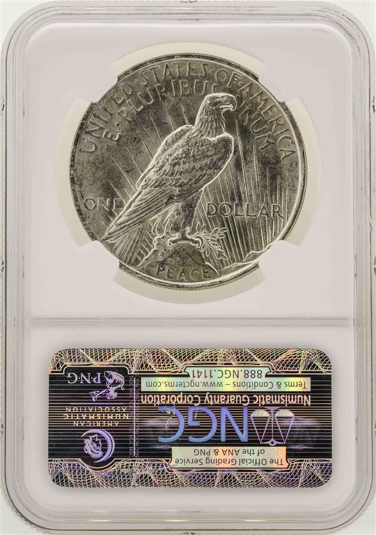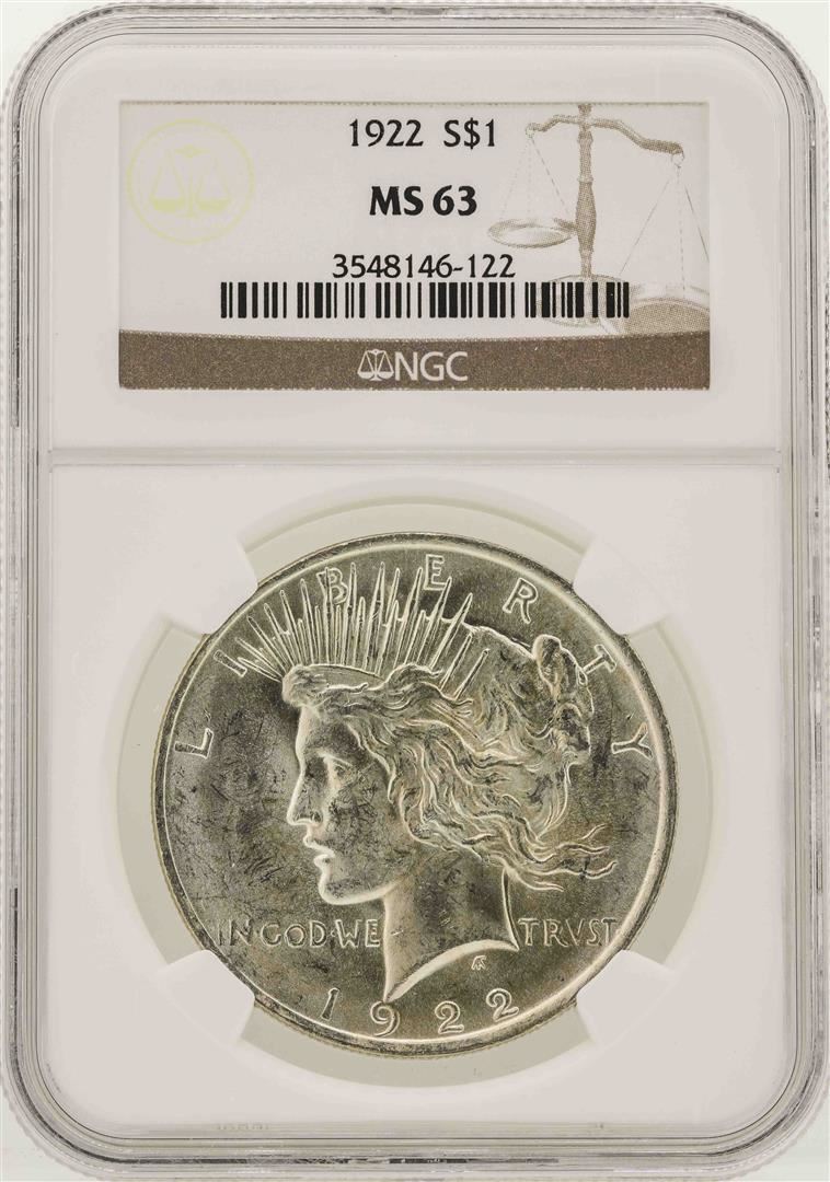 One 1922 $1 Peace Silver Dollar Coin NGC MS63. NGC Certified.