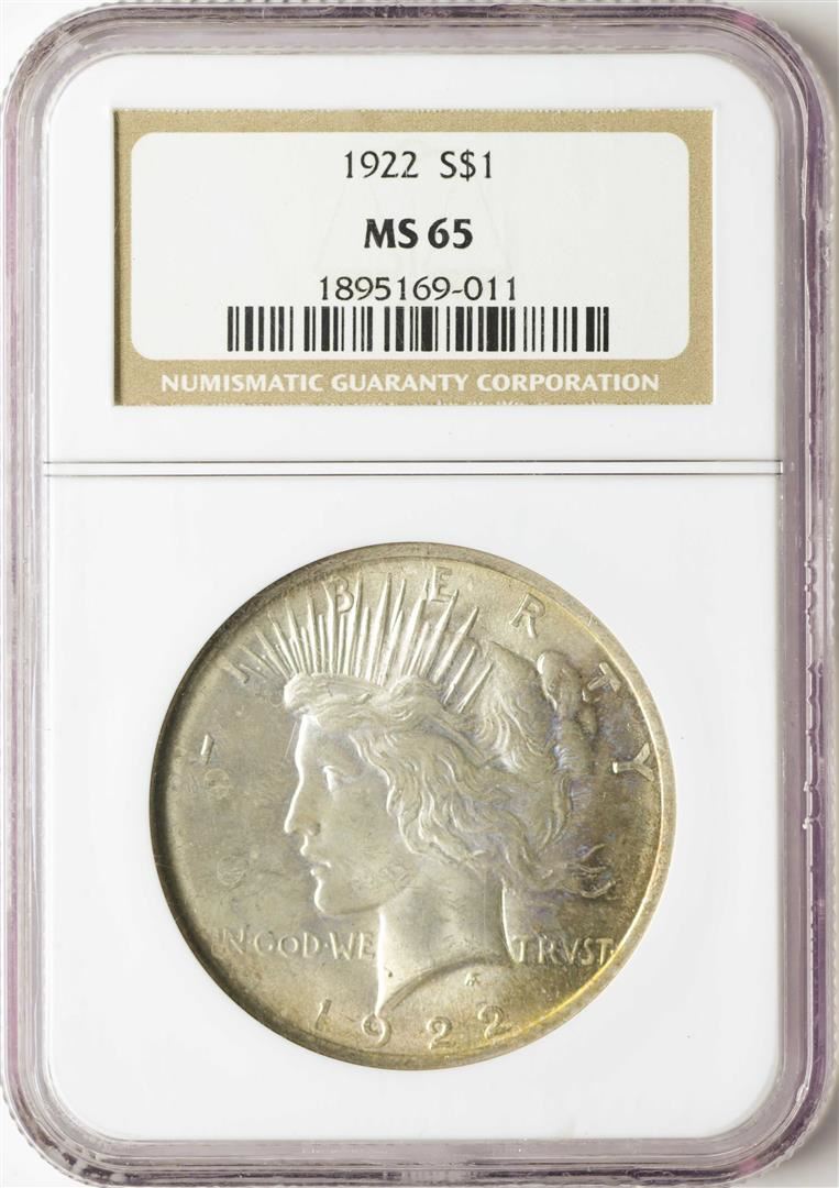 One 1922 $1 Peace Silver Dollar Coin NGC MS65. NGC Certified.