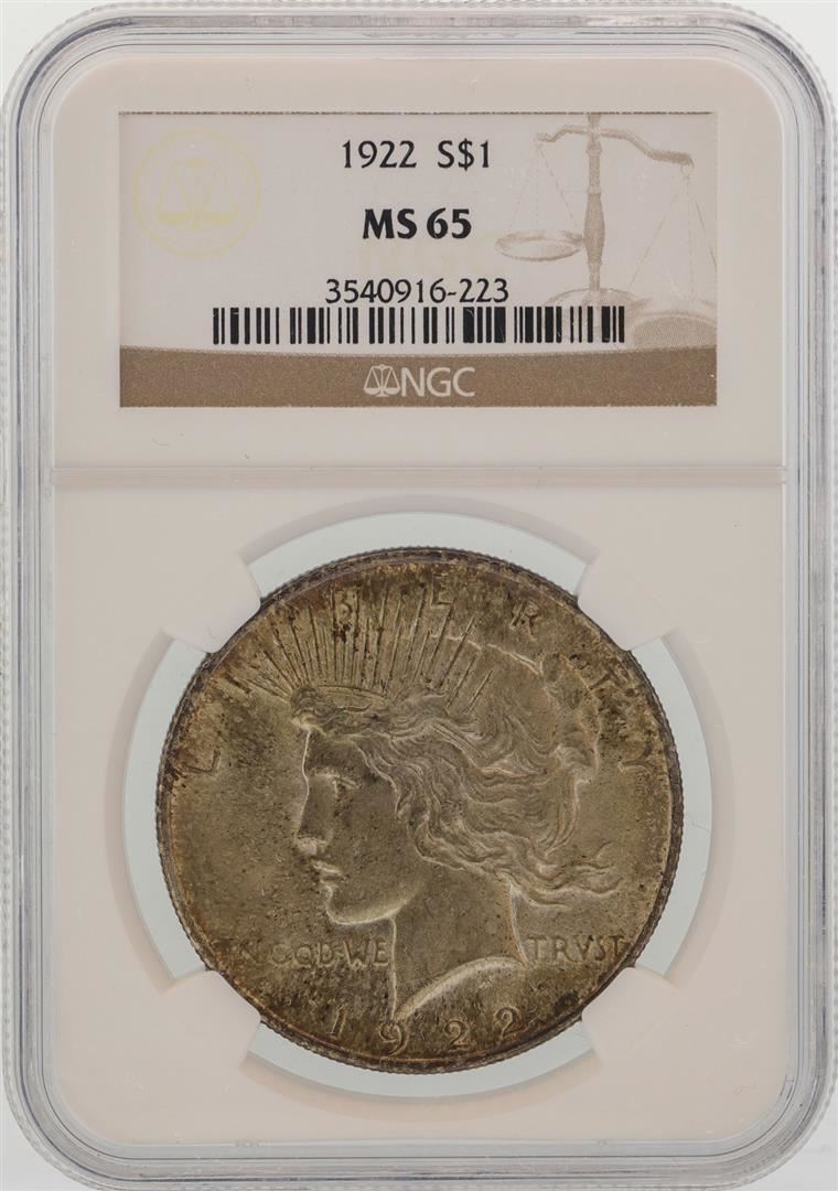 One 1922 $1 Peace Silver Dollar Coin NGC MS65. NGC Certified.