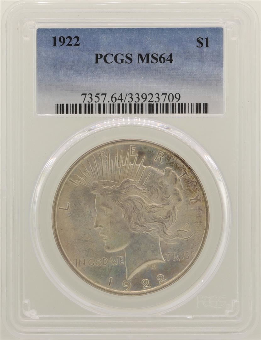 One 1922 $1 Peace Silver Dollar Coin PCGS MS64. PCGS Graded.