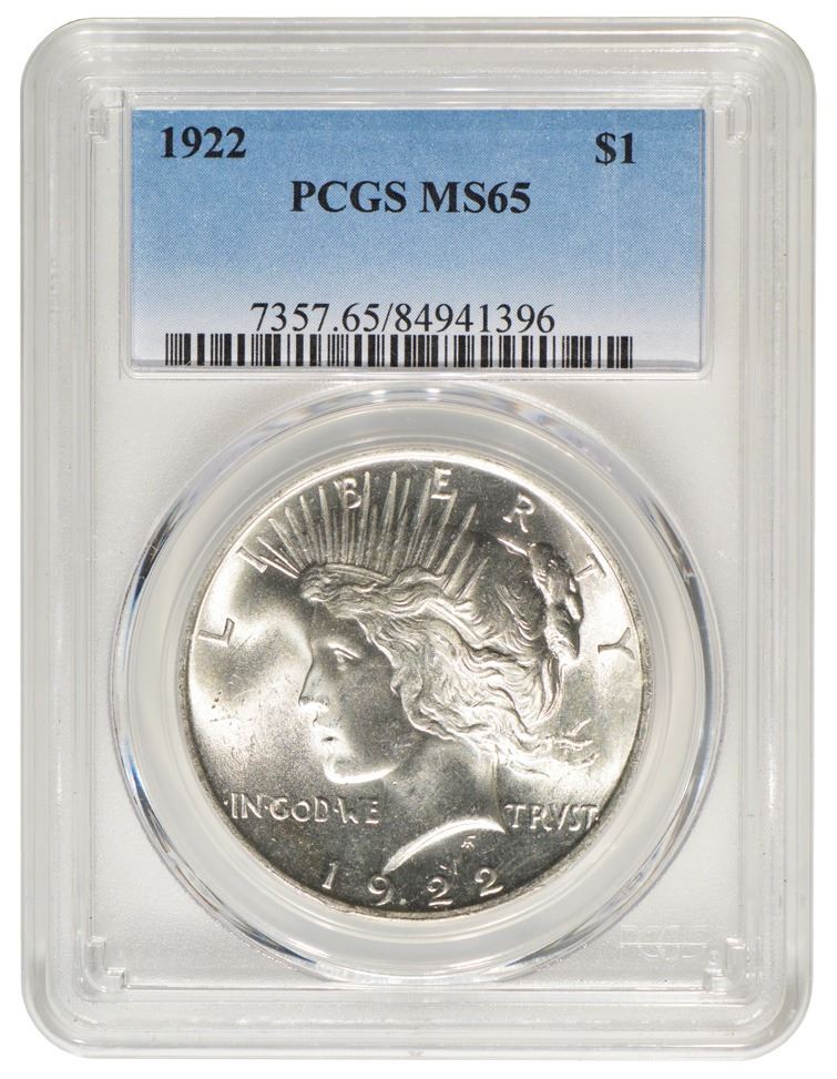 One 1922 $1 Peace Silver Dollar Coin PCGS MS65.