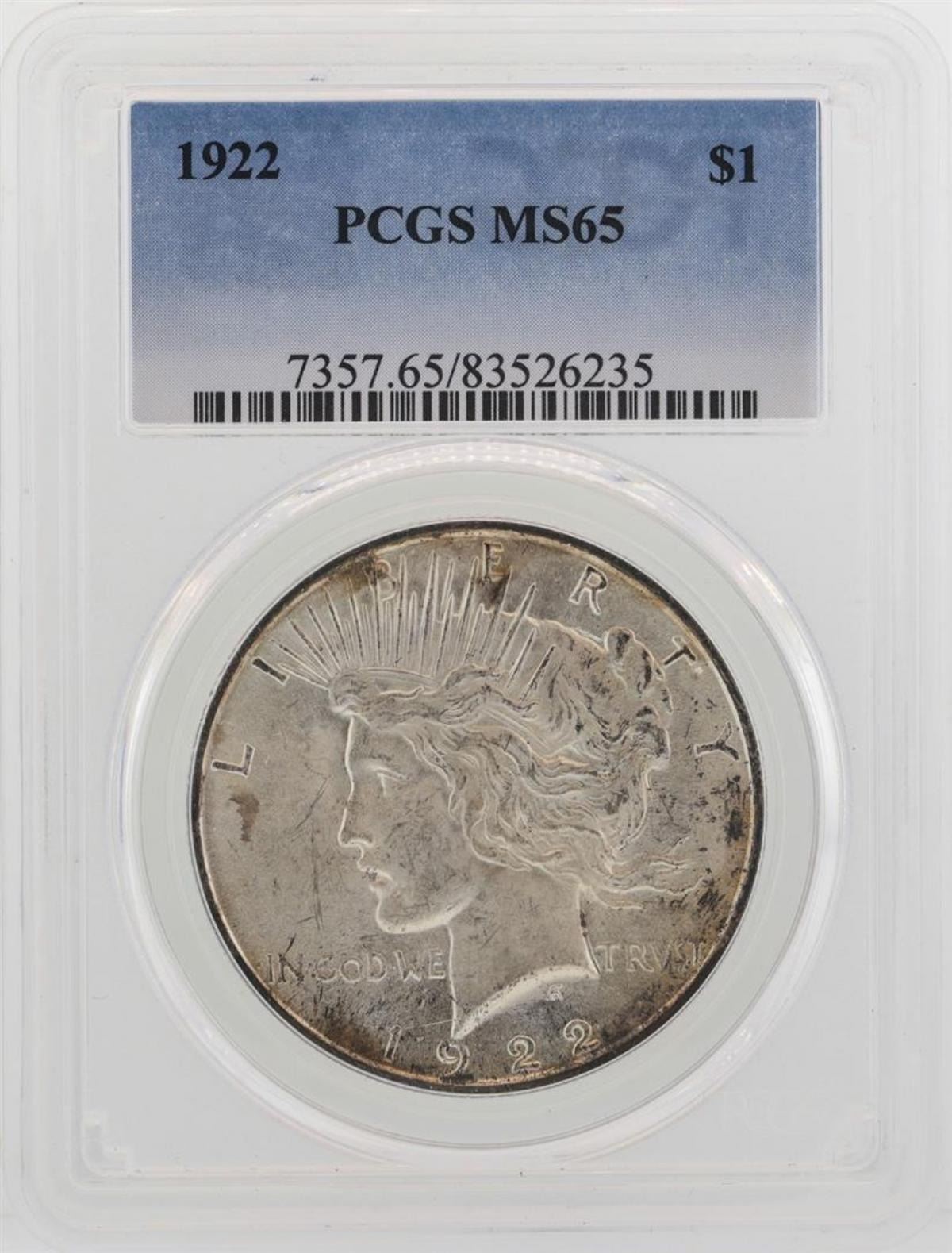One 1922 $1 Peace Silver Dollar Coin PCGS MS65. PCGS Certified.