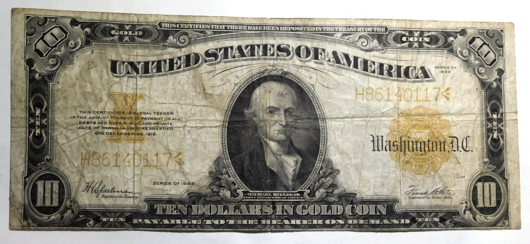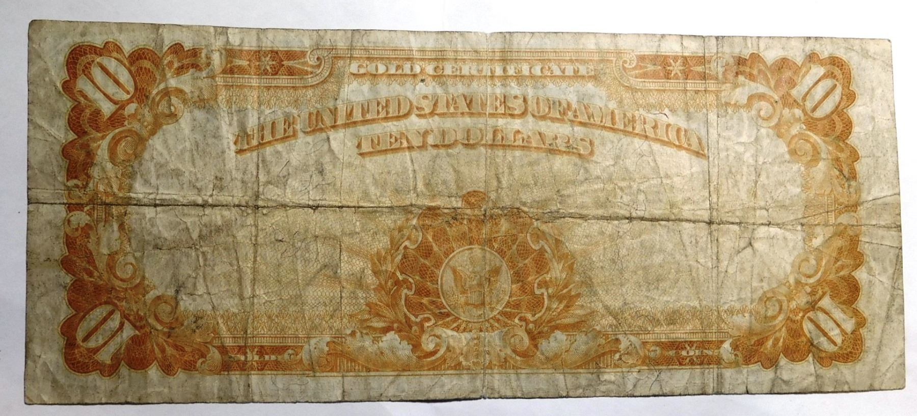 1922 $10.00 GOLD CERTIFICATE VG