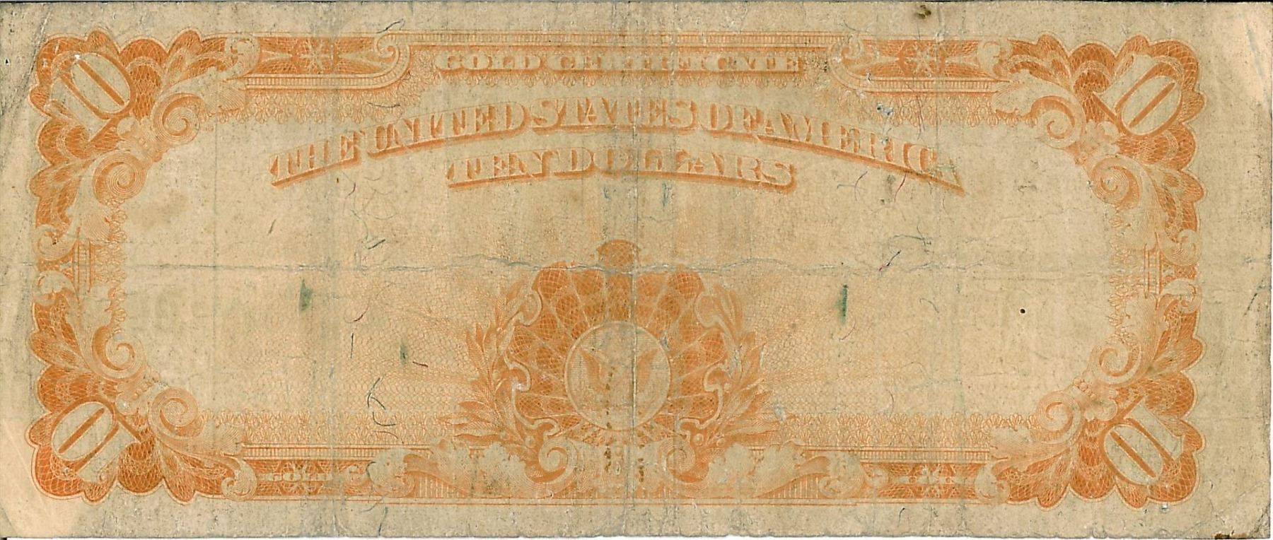 One 1922 $10 Gold Certificate Bank Note. The serial number is 52591744.